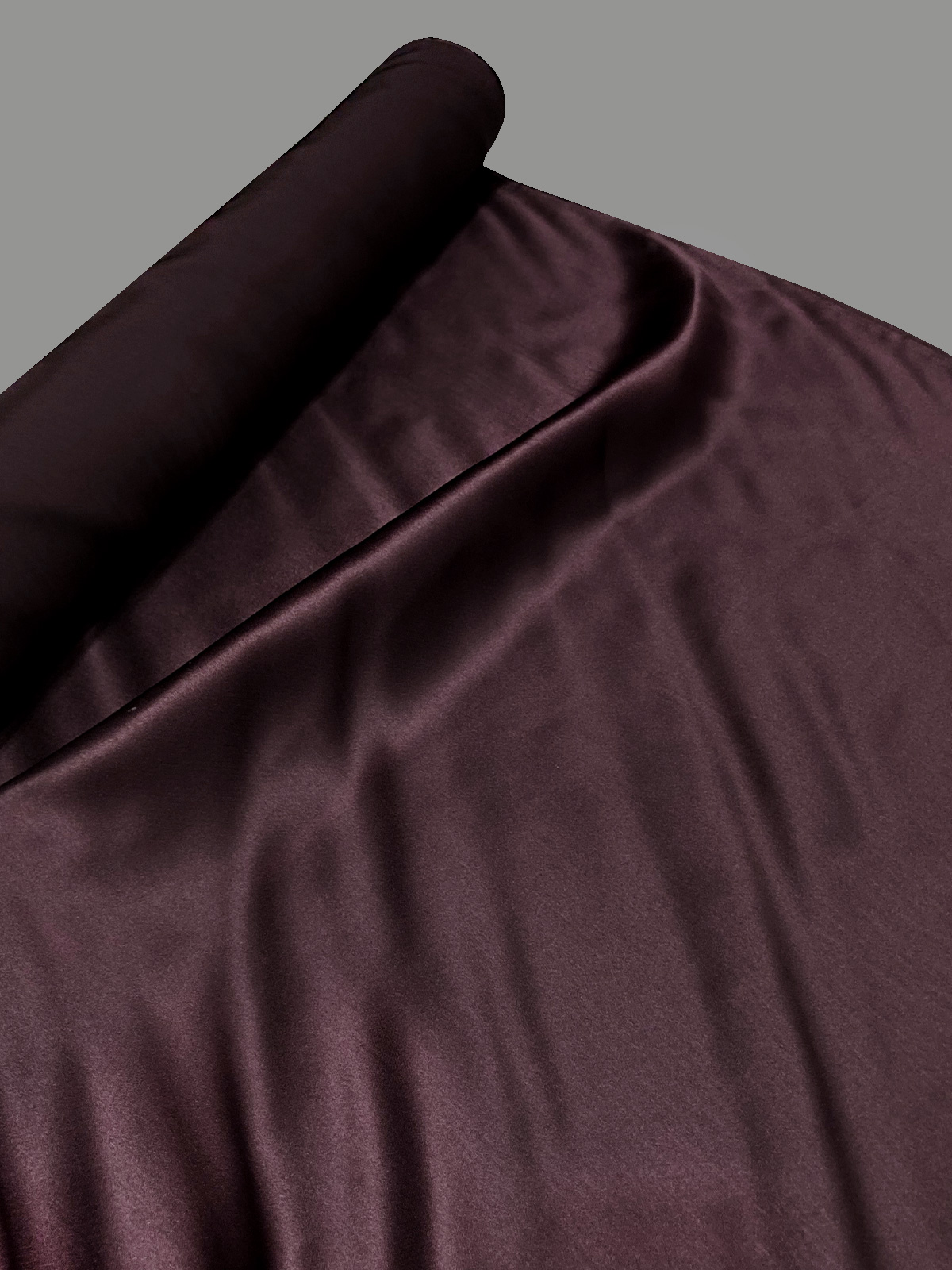 진한색 밤색이 매력적인 실크로 톡톡한 느낌이 있는 고광택 소재입니다.