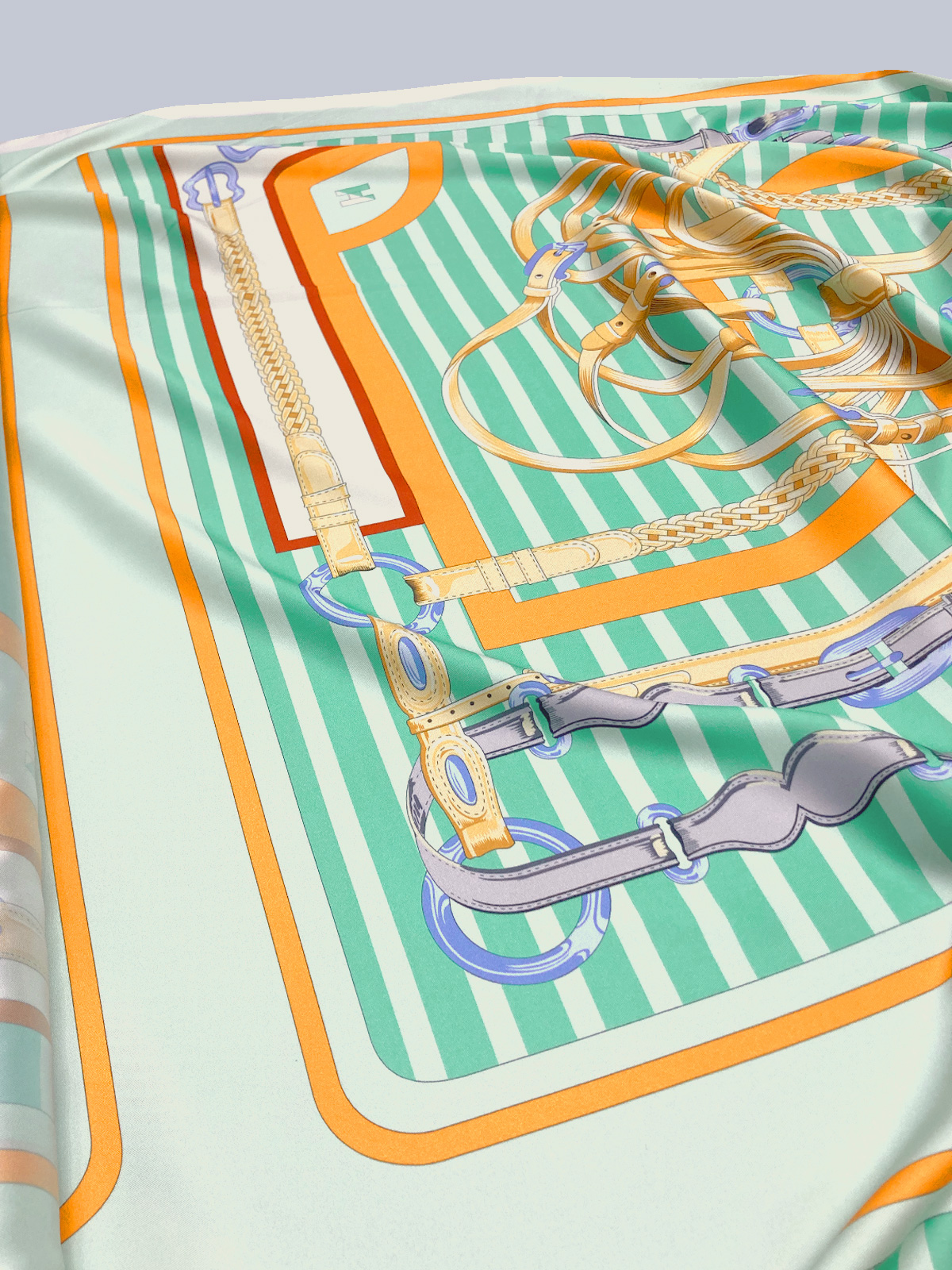 에르메스 패턴 골드민트 버전의 폴리 투일 원단 프린트입니다.