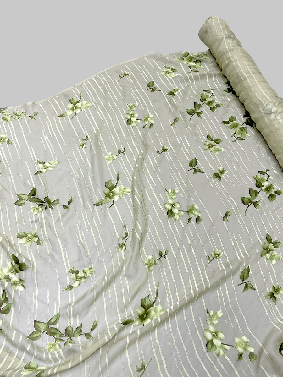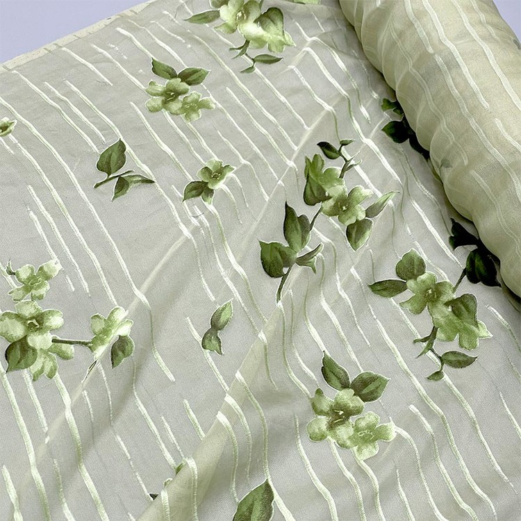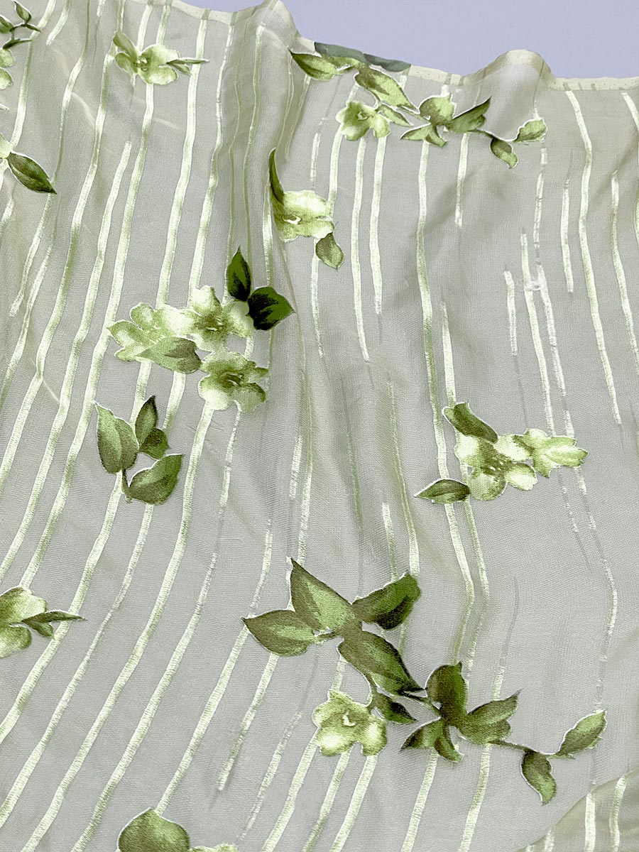 그린컬러의 쉬폰실크 위에 보타니패턴이 번아웃으로