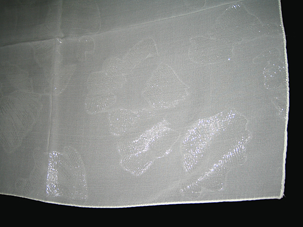 쉬폰실크 조직에 필름으로 잎사귀 모양으로 제직된 스카프입니다. 소폭 45 X 180 : 폭이 좁은 스타일로 가격이 저렴하며 간편하게 연출할 수 있습니다.