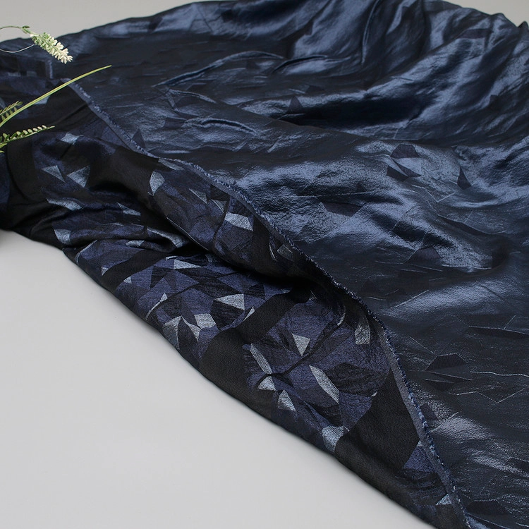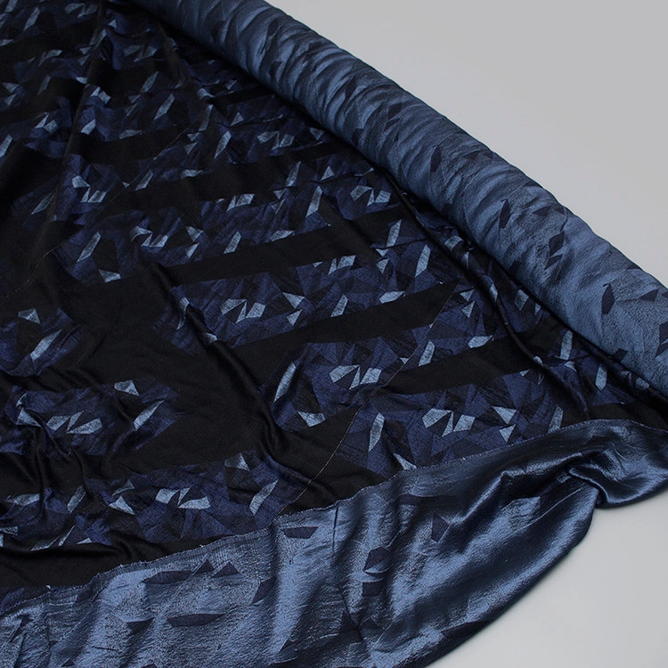 기하학 마름모 패턴 선염 쟈카드 실크- 네이비
