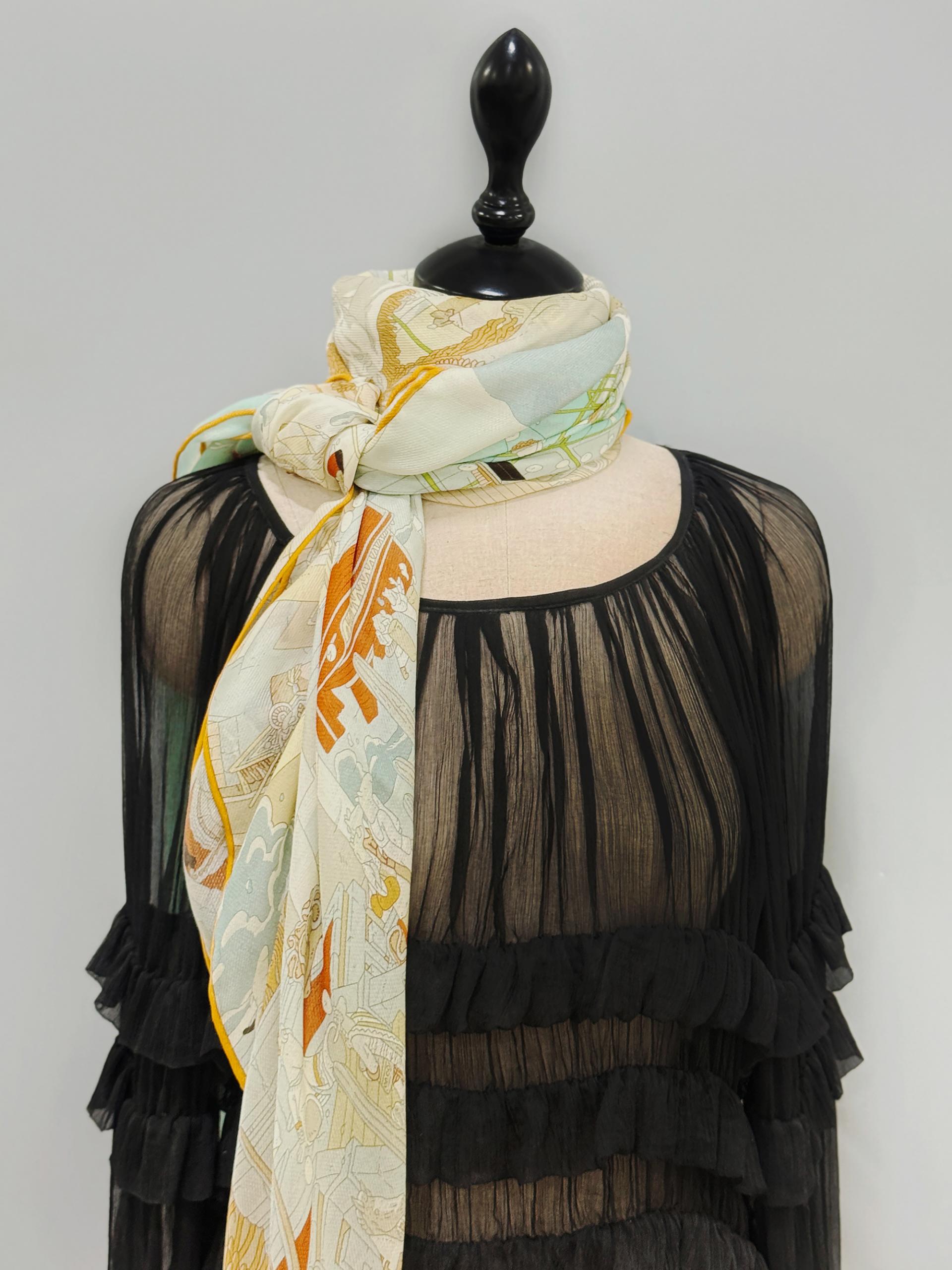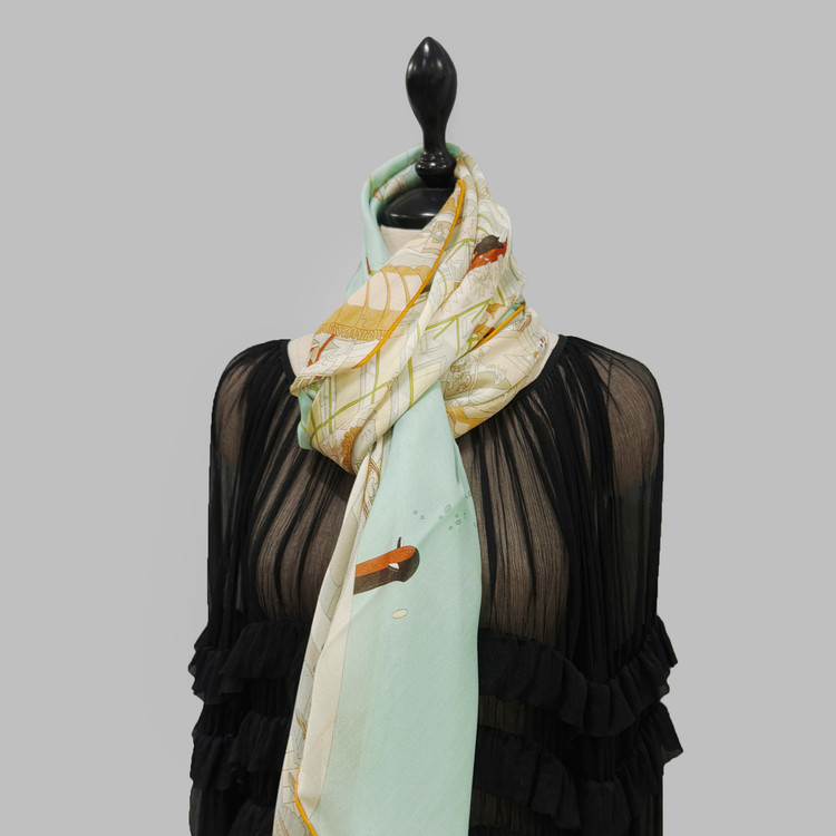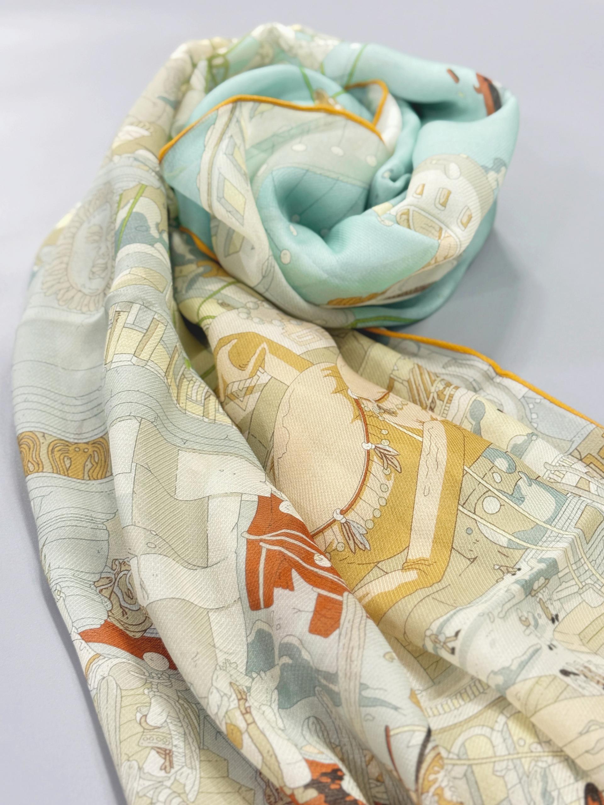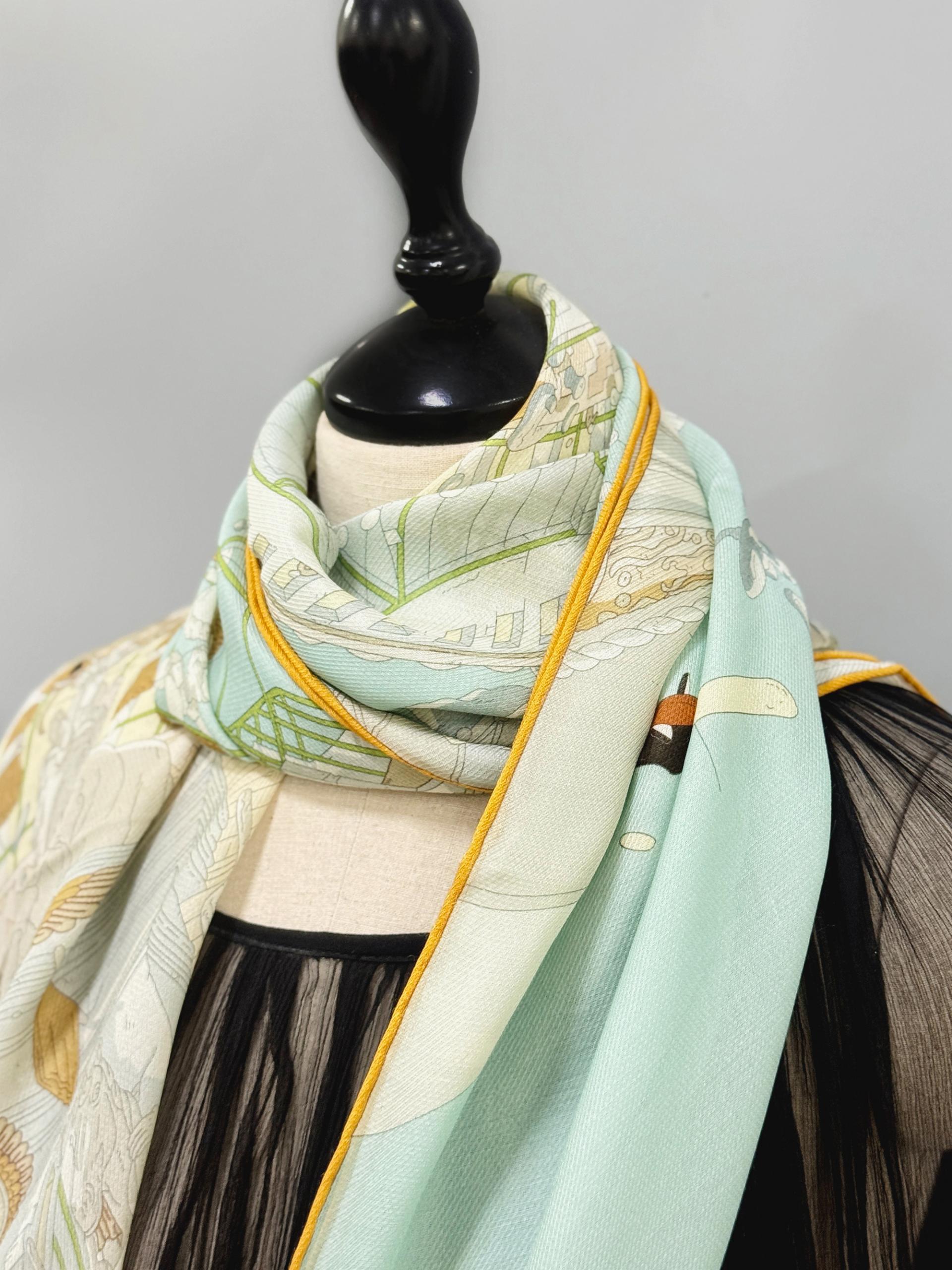 12m/m 샤리 울실크에 프린트 되어진 고급 대형 숄 스카프 입니다. 얇은 두께감과 따뜻한 감촉으로 간절기에 사용하기 좋습니다.