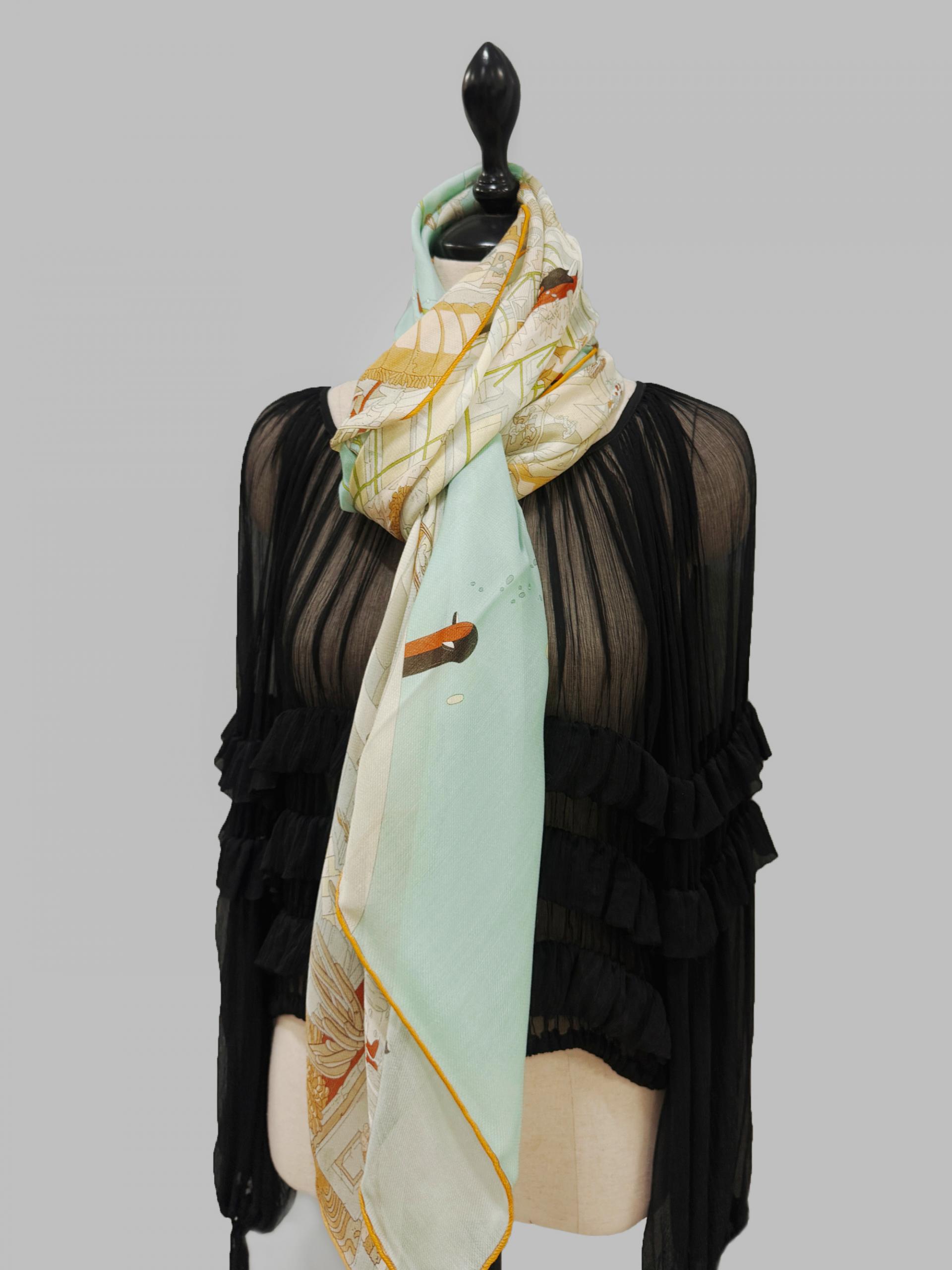 마무리 봉제는 한땀한땀 핸드메이드로 말아서 제작된 고급 스카프입니다.