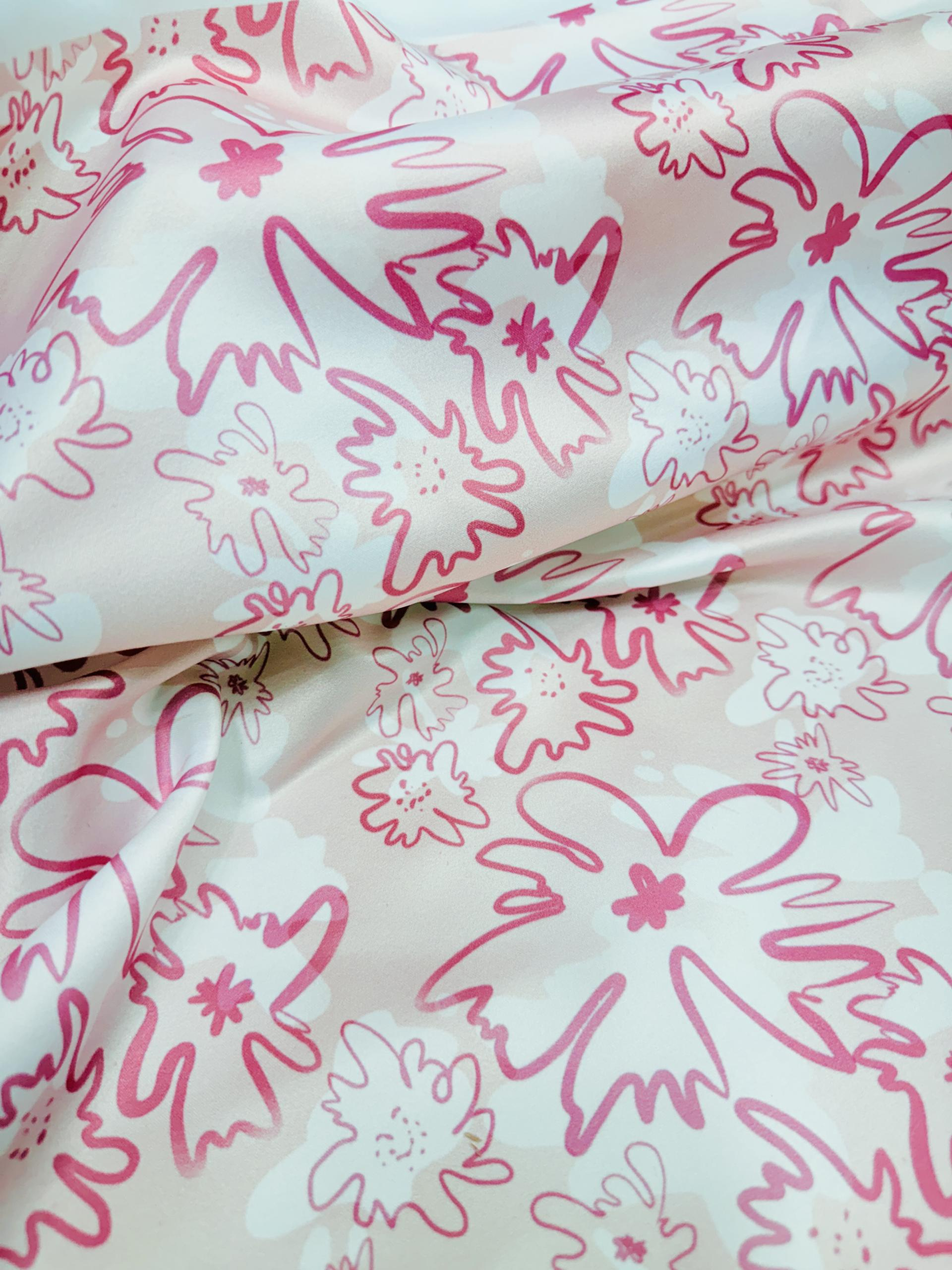 2. 58인치 150D 더치세틴 핑크플라워 패턴 1Y (A급)