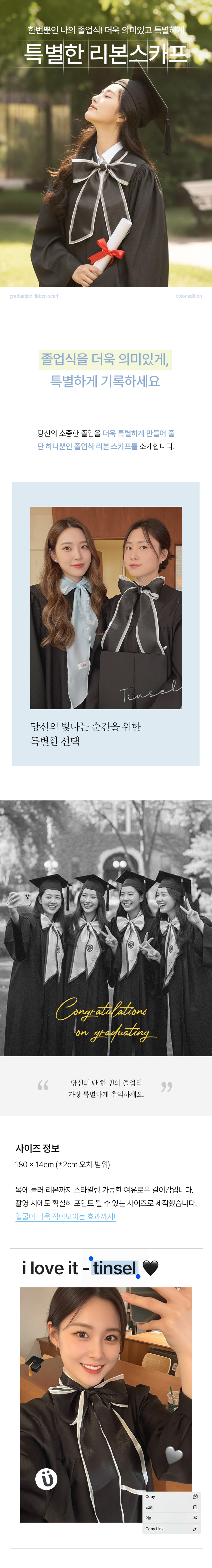 틴슬 | 졸업식스카프 단색버전 | 졸업 리본 | 대학교 학위수여식 졸업선물SALEBESTMDHOT