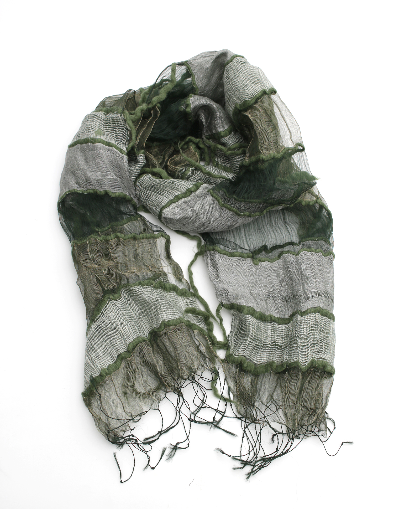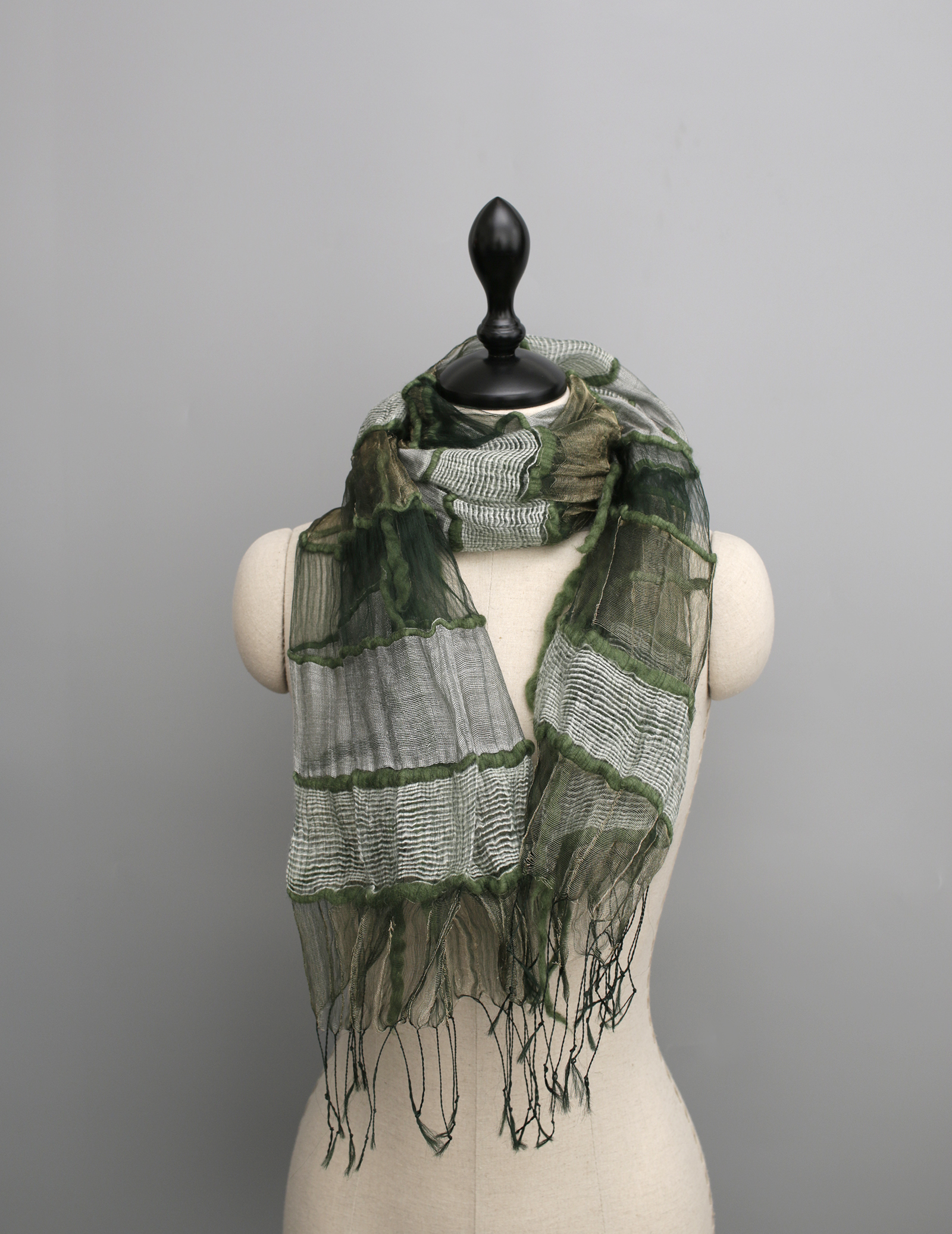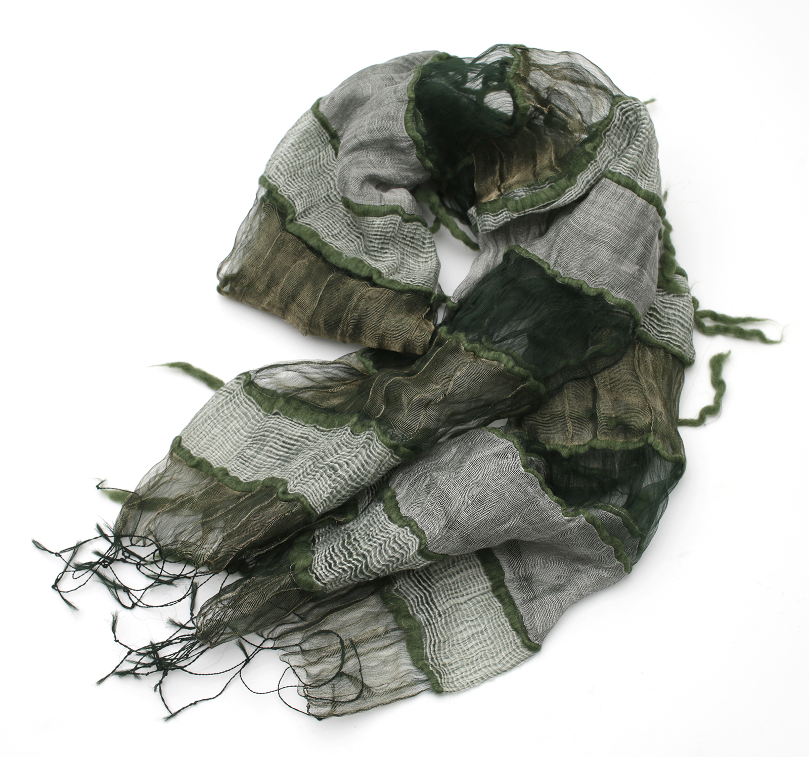 실크원단과 린넨 양모를 팰트 방식으로 멋을 낸 스카프입니다.