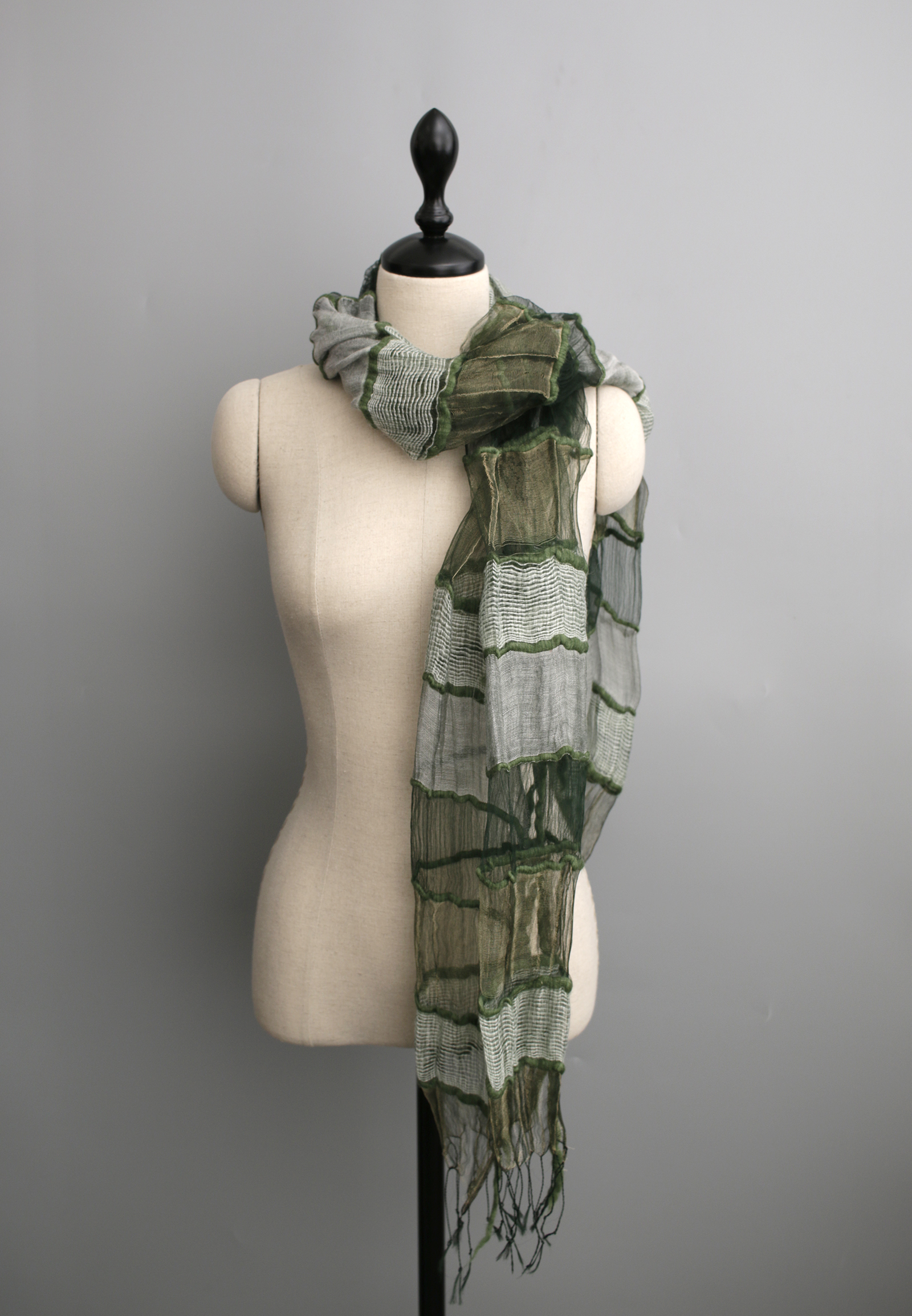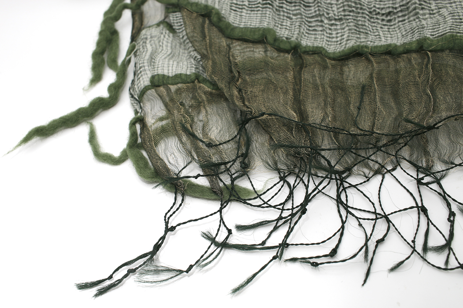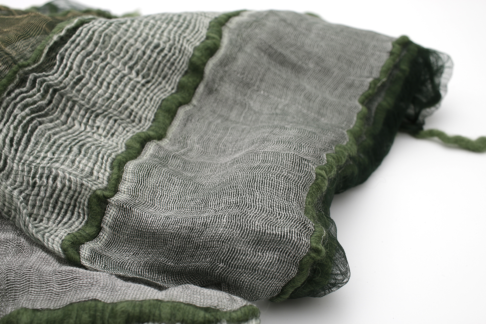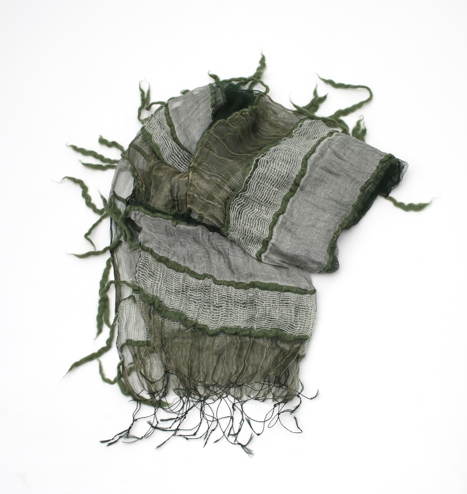 실크원단과 린넨 양모를 팰트 방식으로 멋을 낸 스카프입니다.