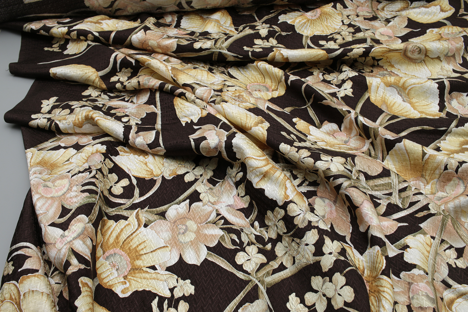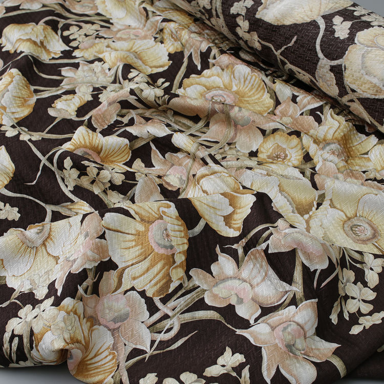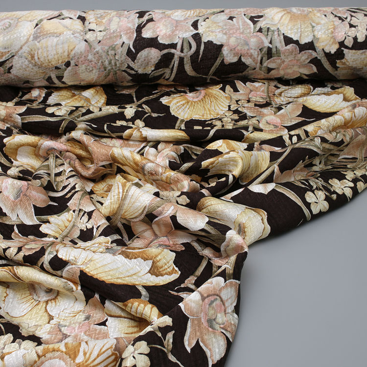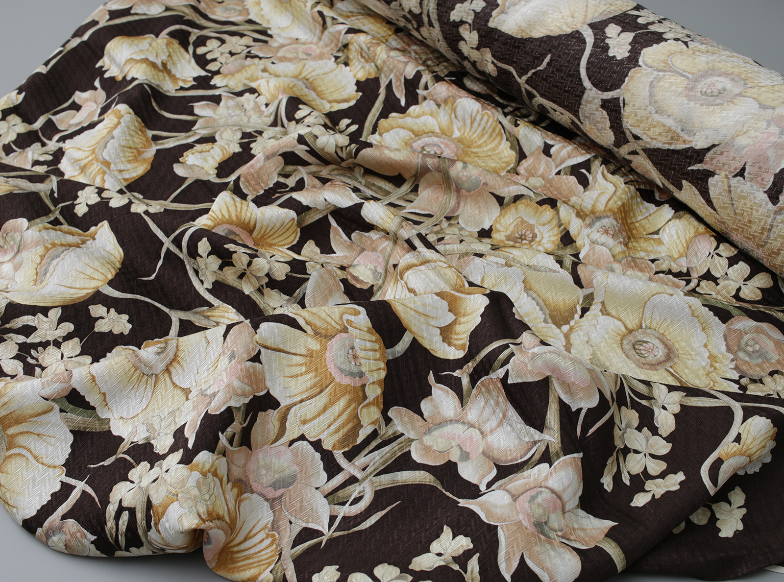 무늬가 있는 원단에 고급스러운 꽃프린트가 된 실크입니다.