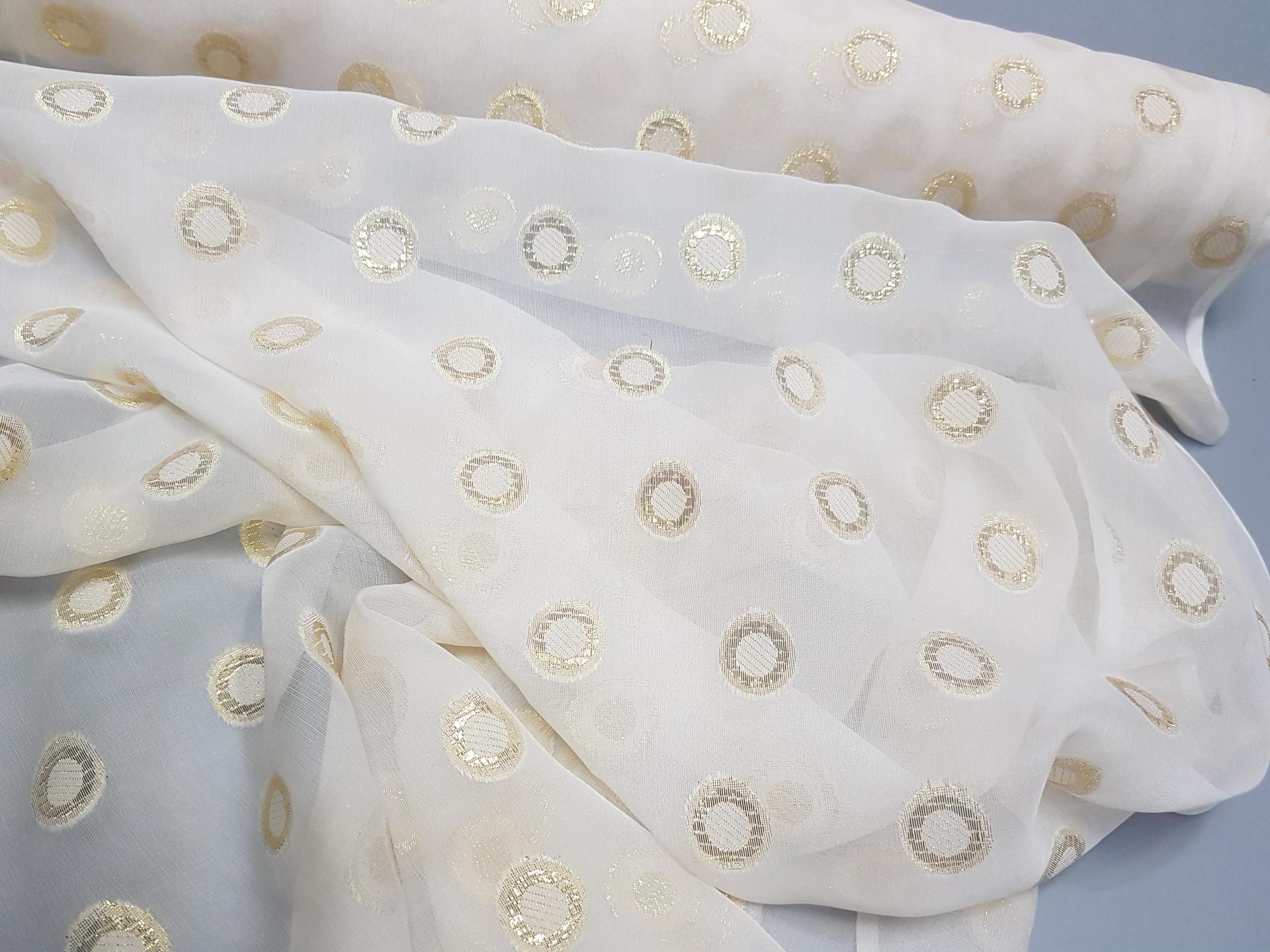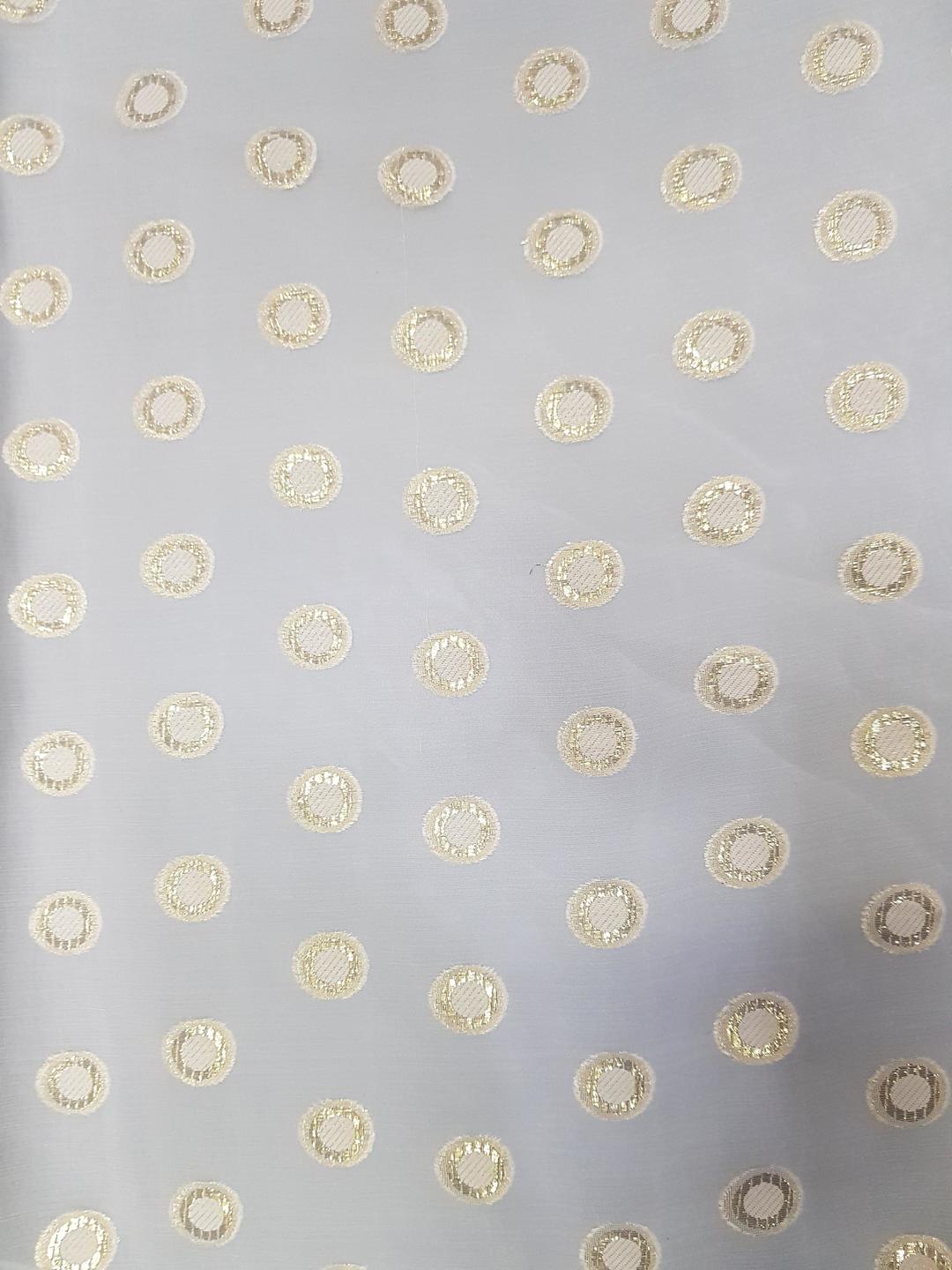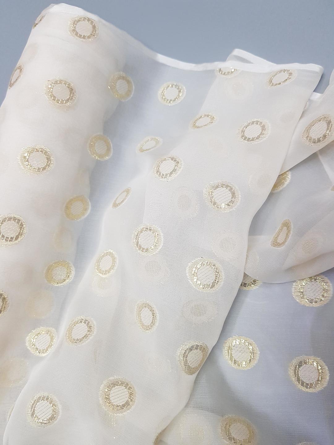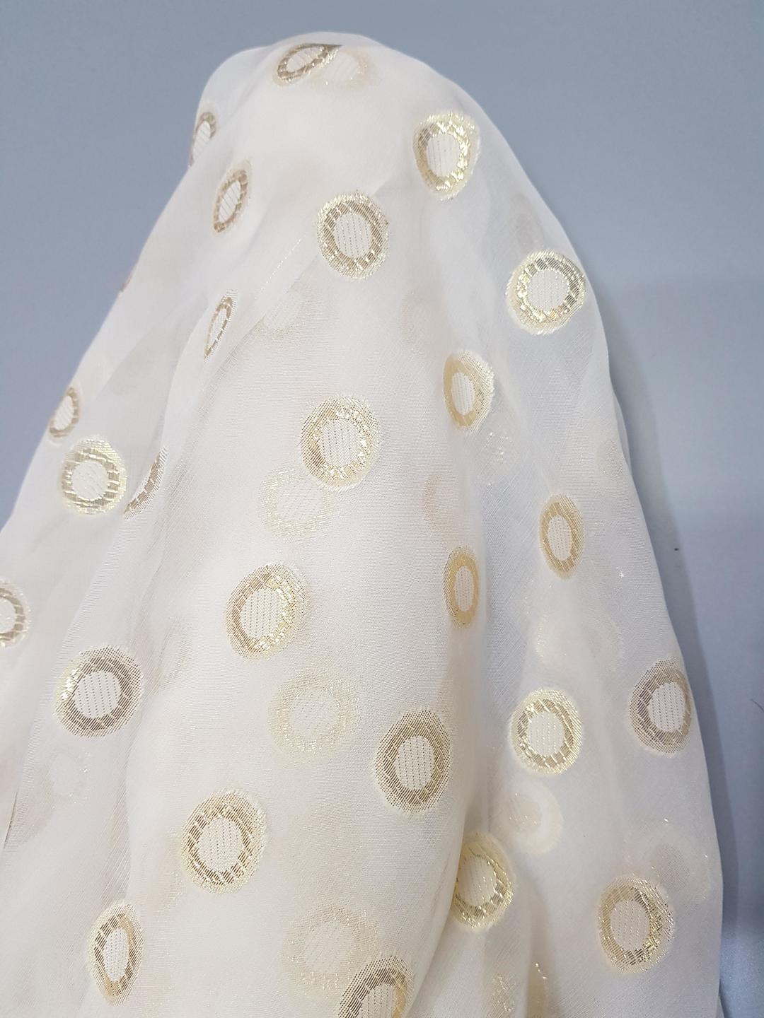 원형 도트문양의 금사로 제직된 쉬폰실크.