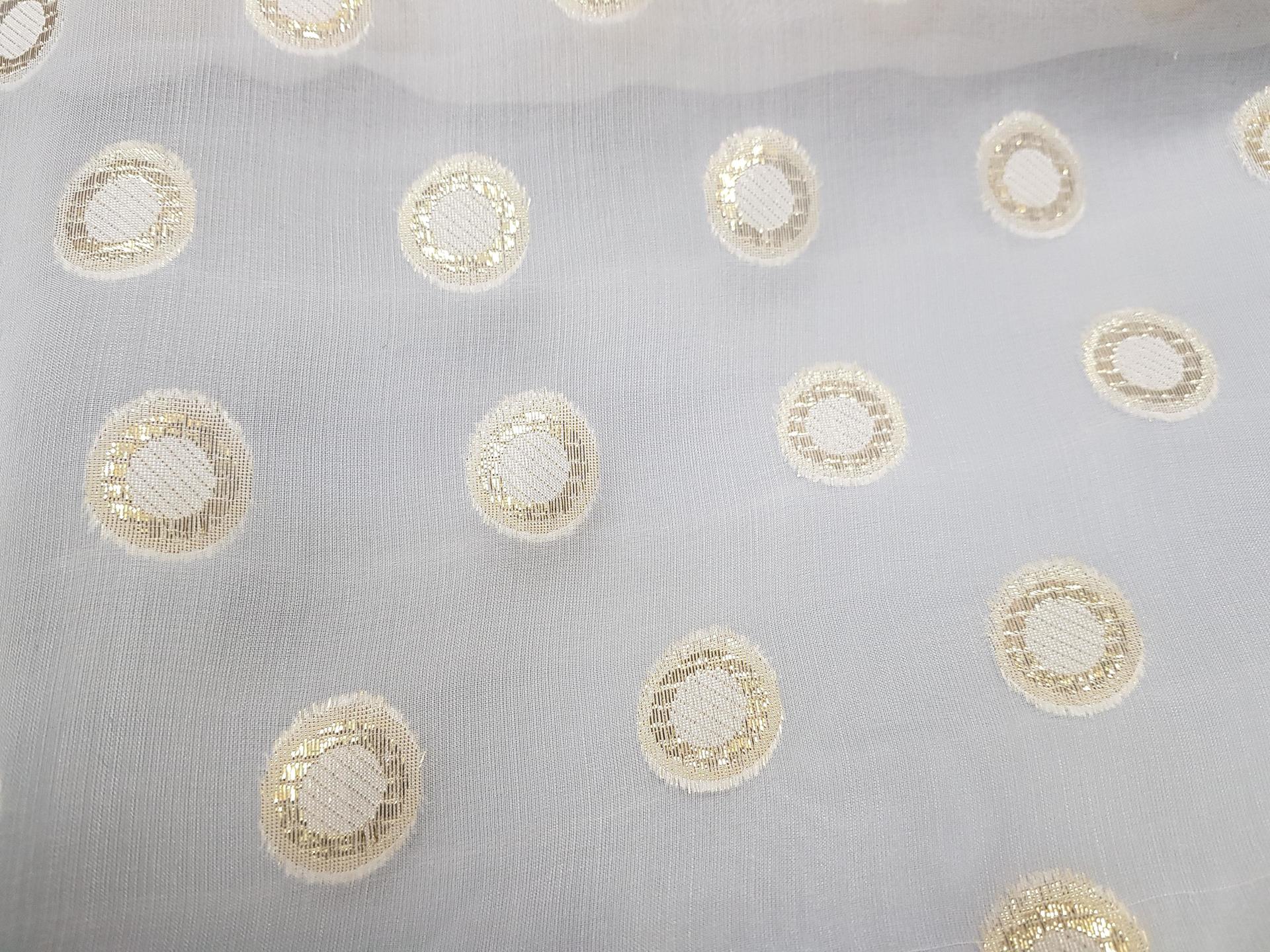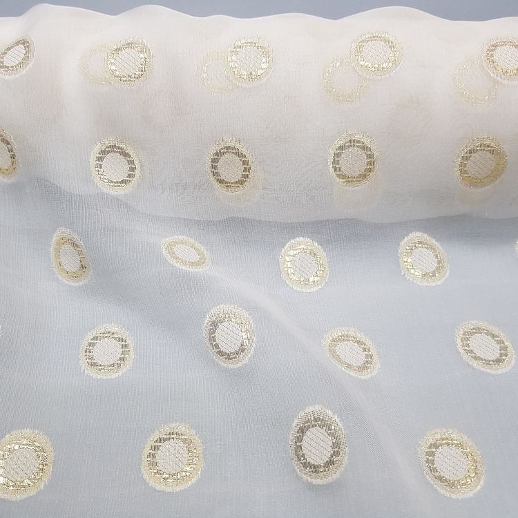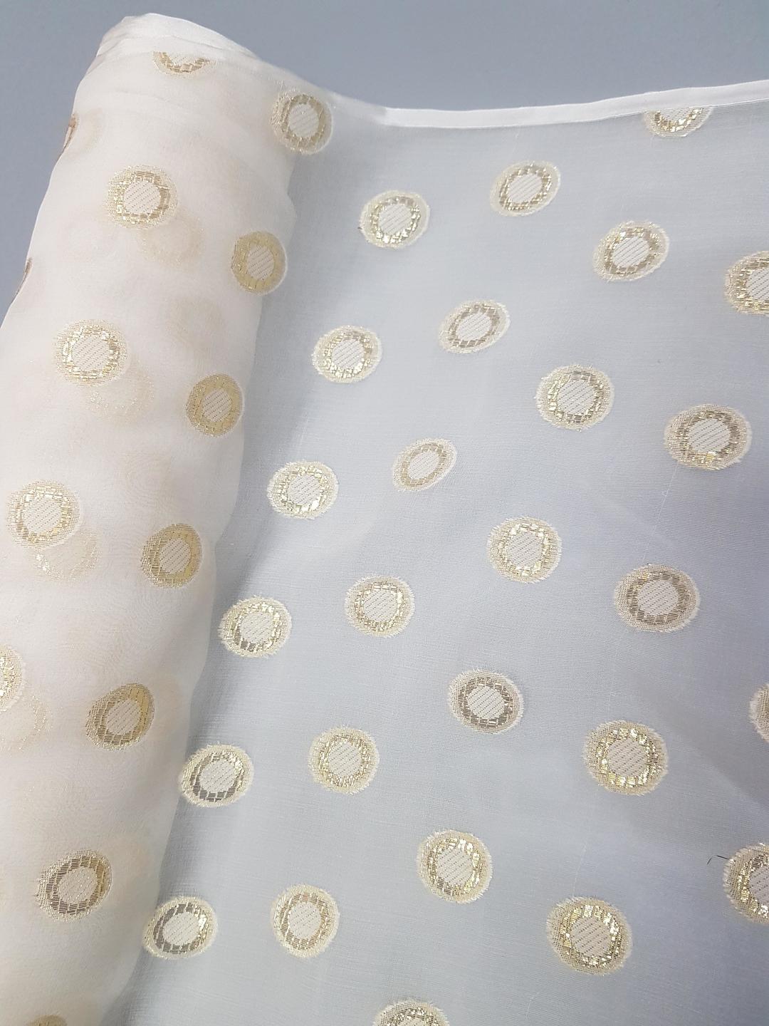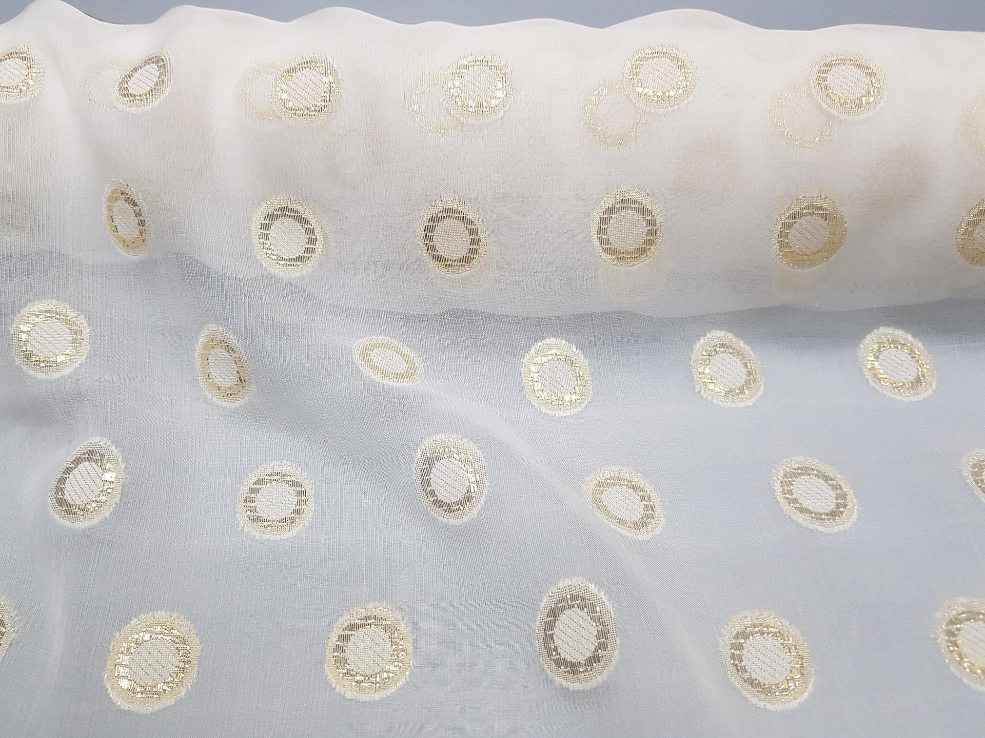 원형 도트문양의 금사로 제직된 쉬폰실크.