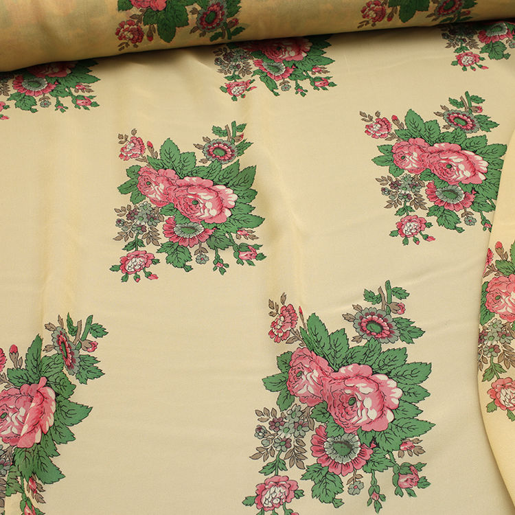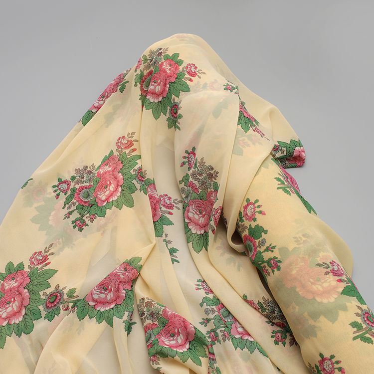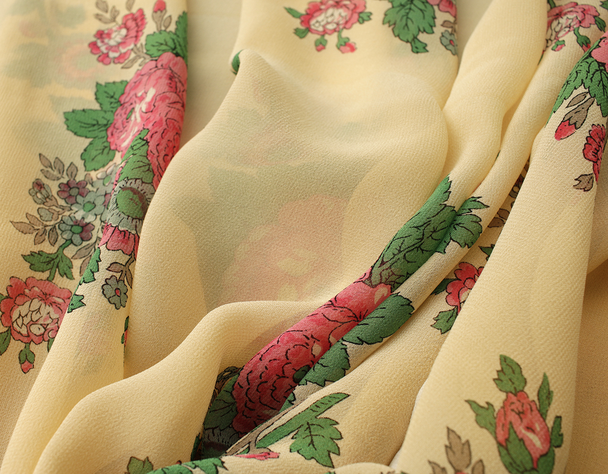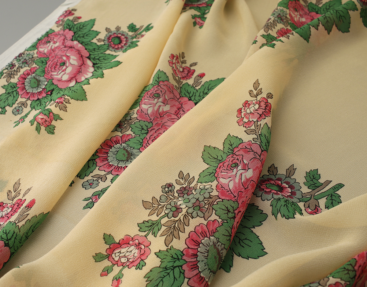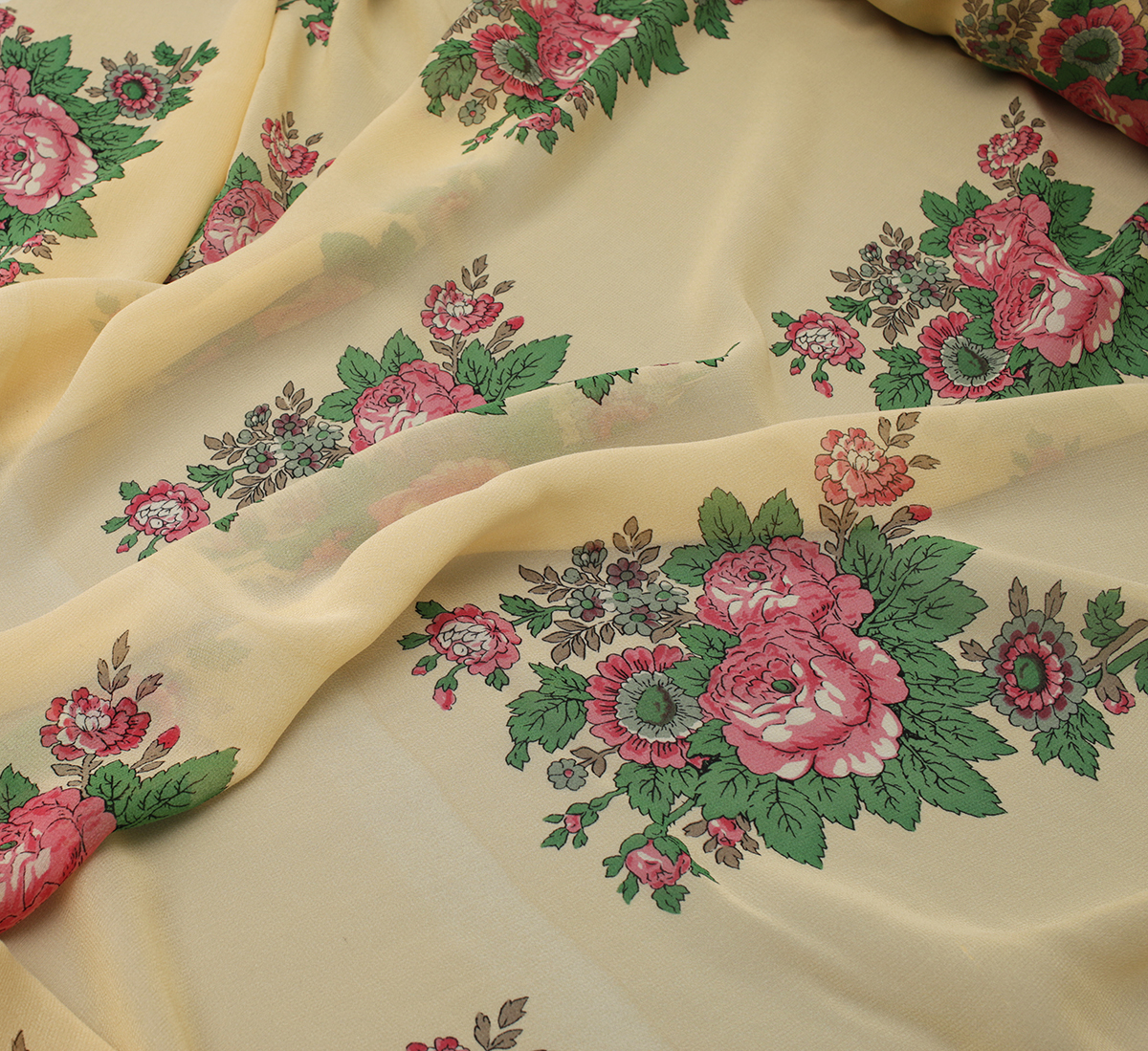 레니본 클래식꽃프린트 골드베이지 쉬폰(12m/m 조제트)