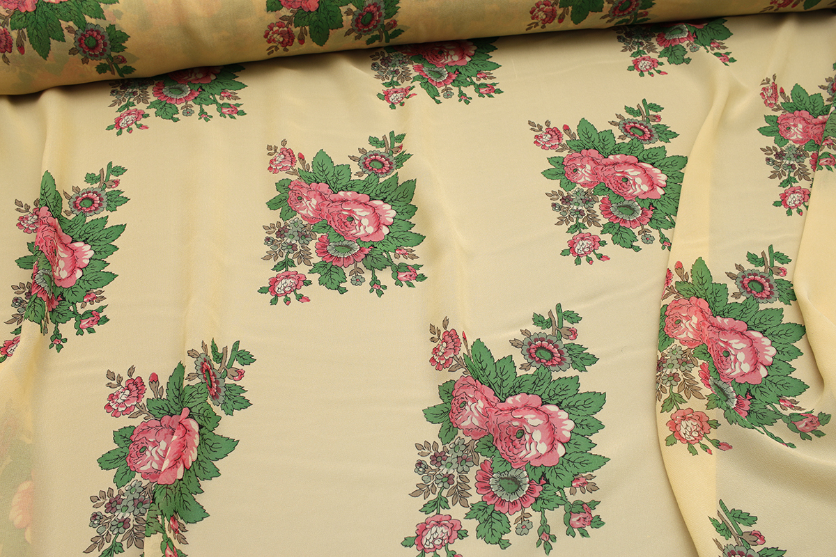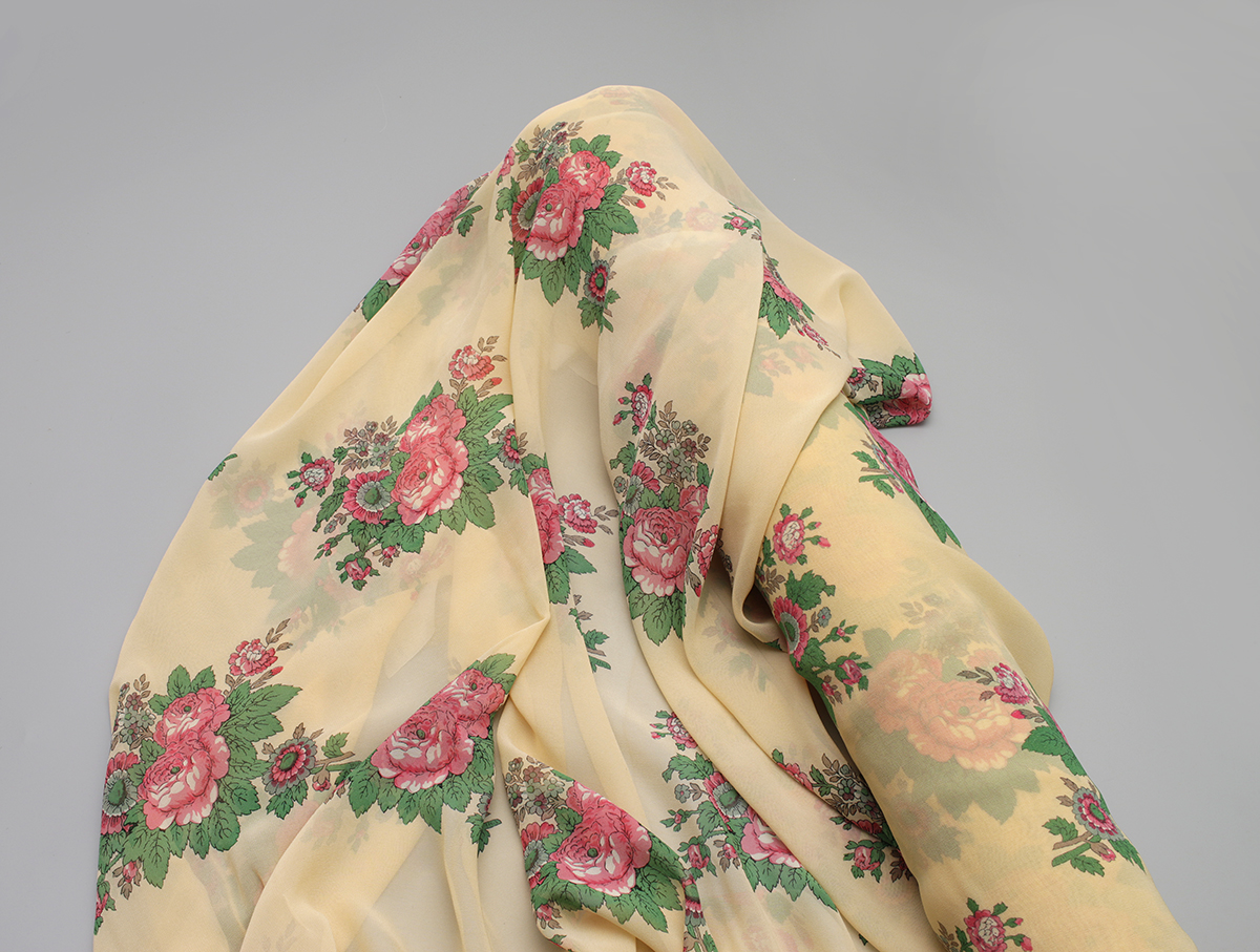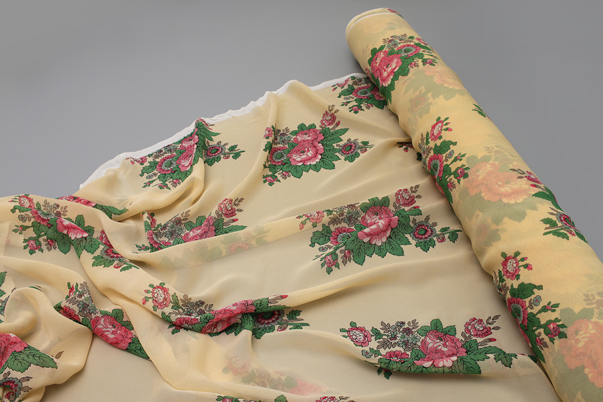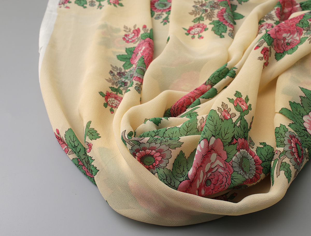 레니본 클래식꽃프린트 골드베이지 쉬폰(12m/m 조제트)
