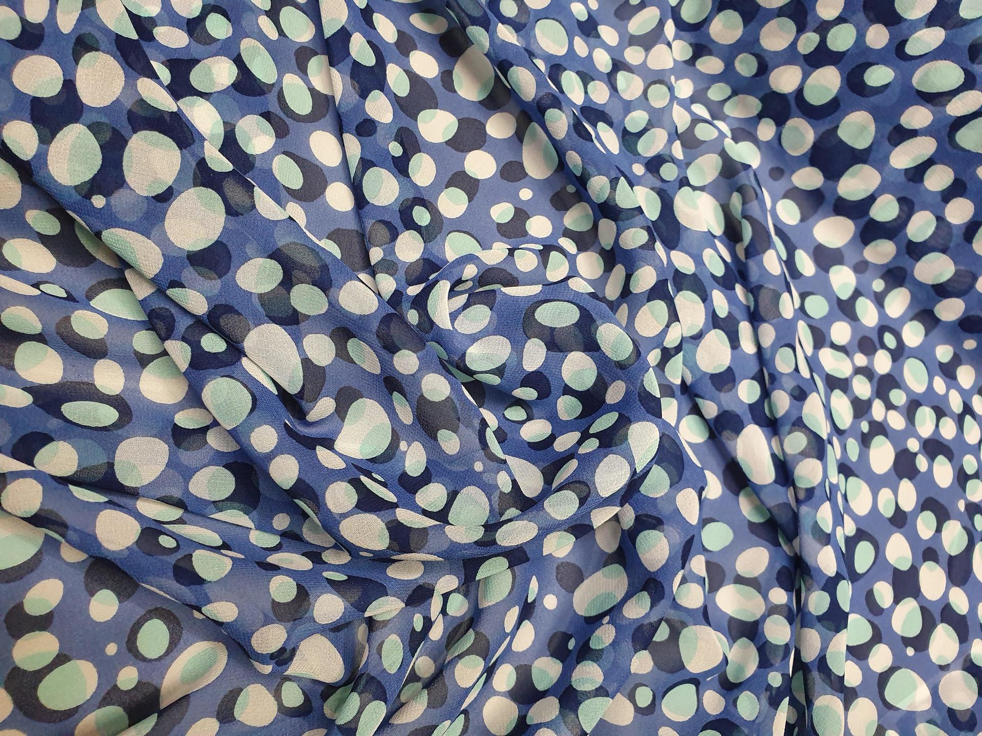 죠세트(쉬폰)바닥에 비눗방울이 겹쳐지는 듯한 느낌을 프린트한 원단입니다.
