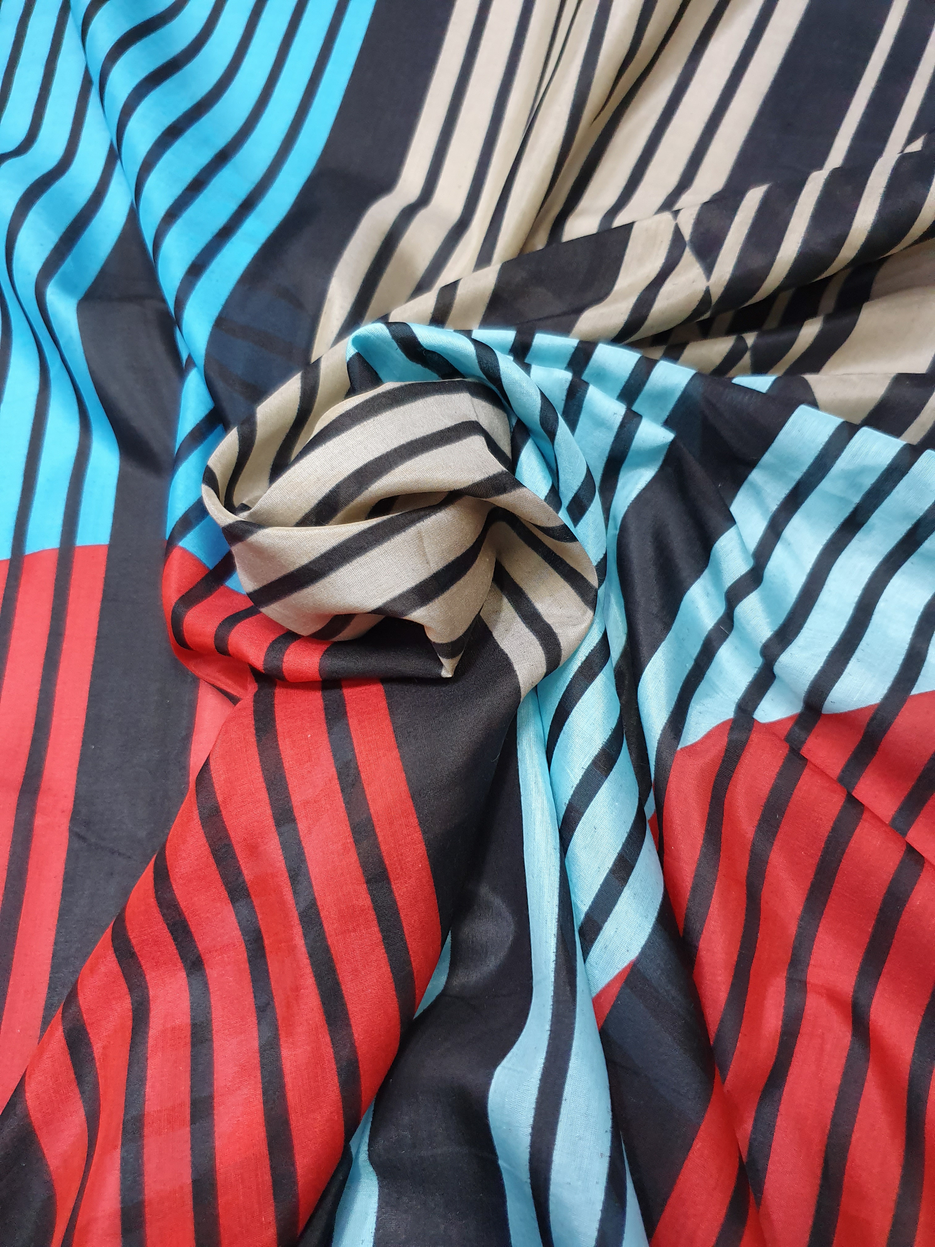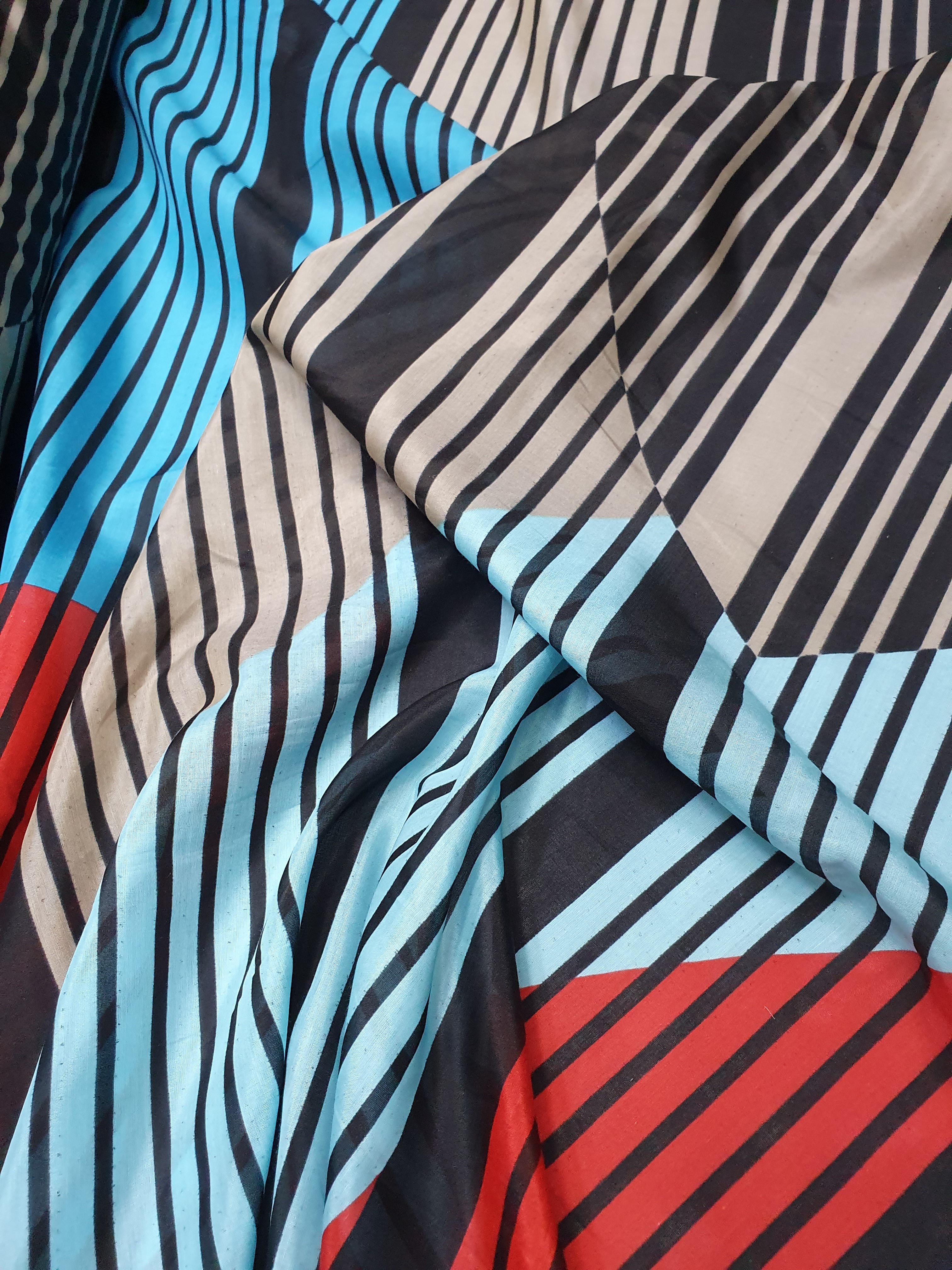 고급 브랜드 납품 원단으로 선명한 컬러와 세련된 기하학무늬가 멋진 원단입니다.