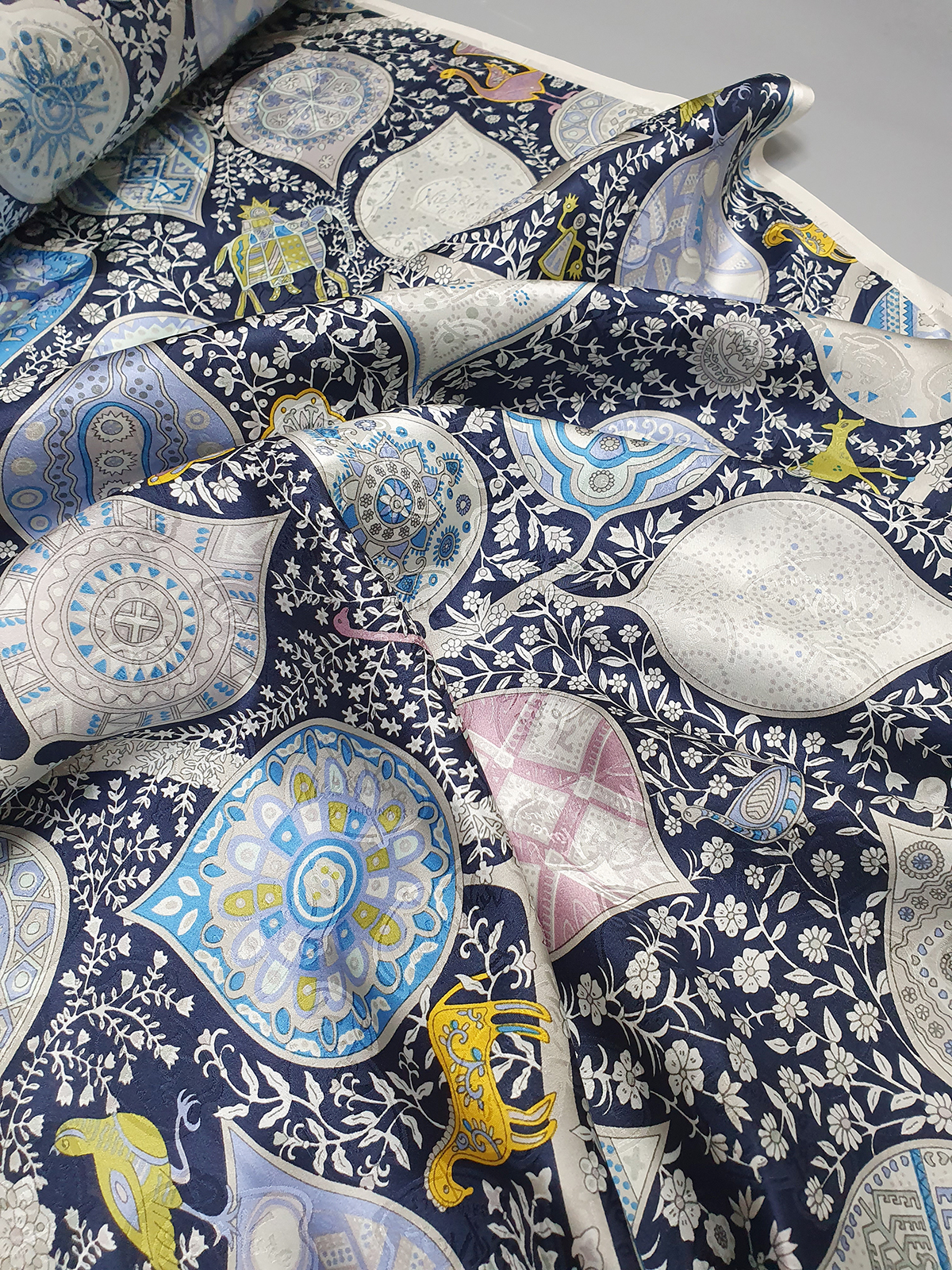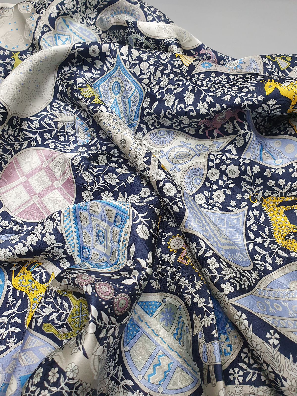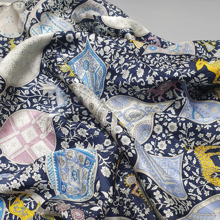 H st. 애니멀페이슬리 쟈카드 실크(네이비)