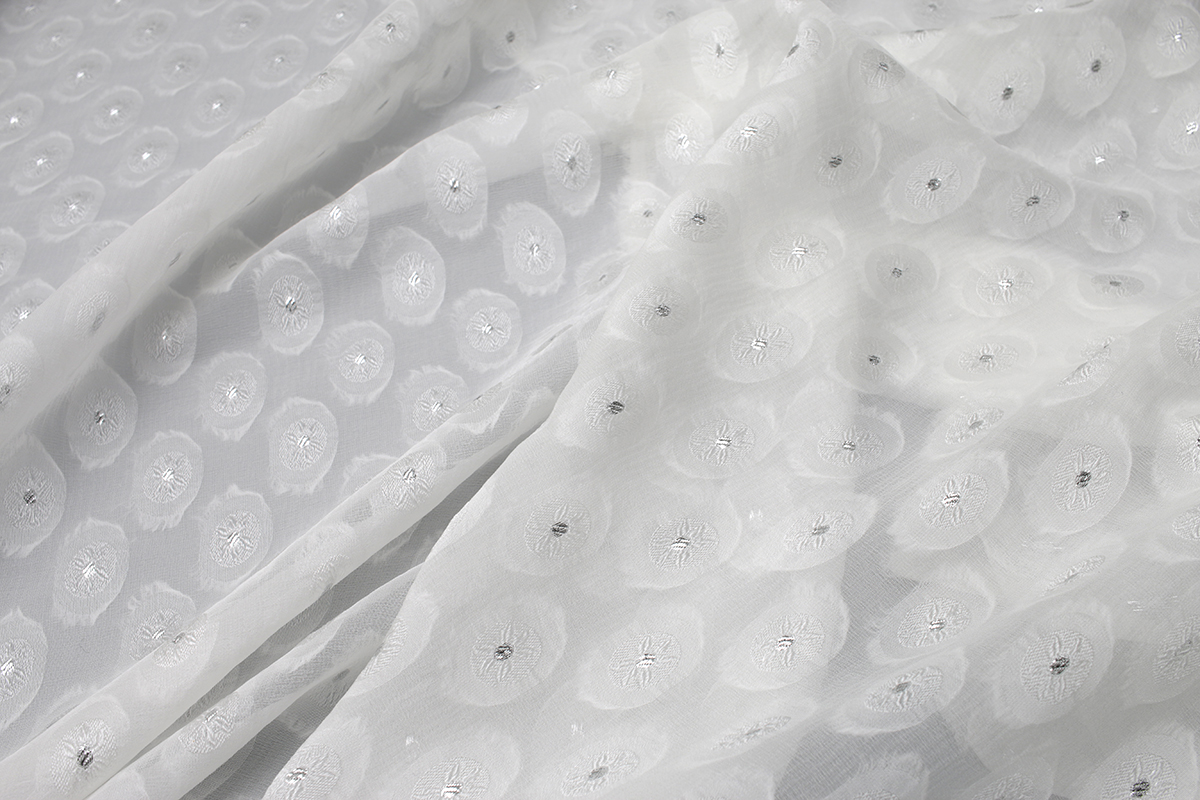 실버 메메탈릭을 실크원사와 함께 무늬를 표현한 원단입니다.