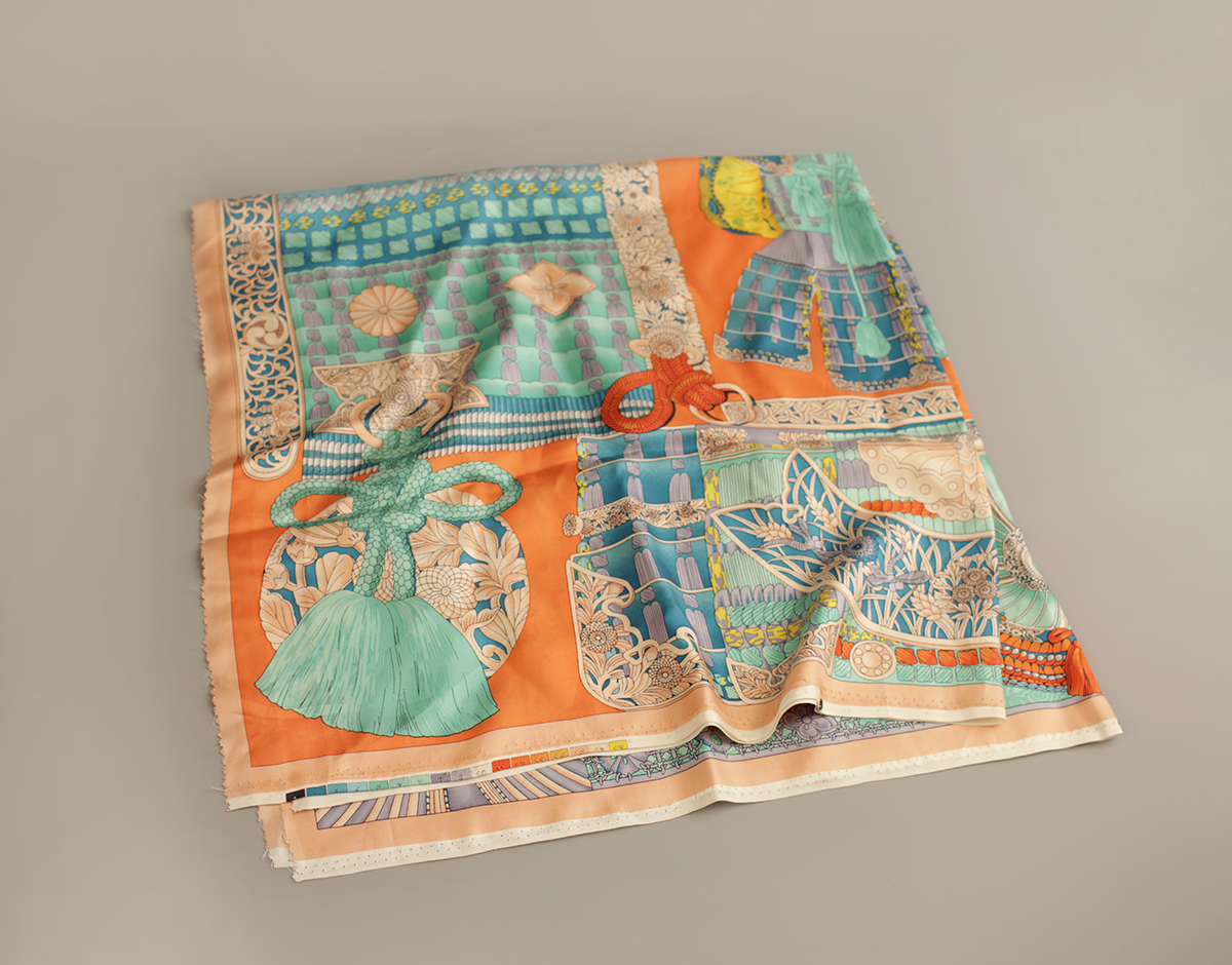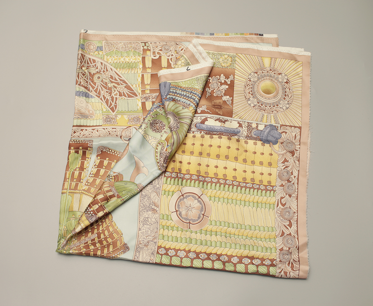 사무라이를 모티프로 디자인한 스카프용 패턴원단입니다.