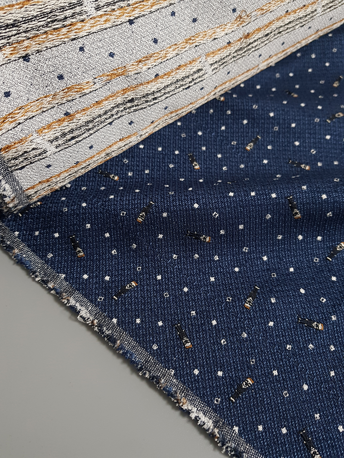 선염 쟈카드 네이비 캐릭터 패턴 실크