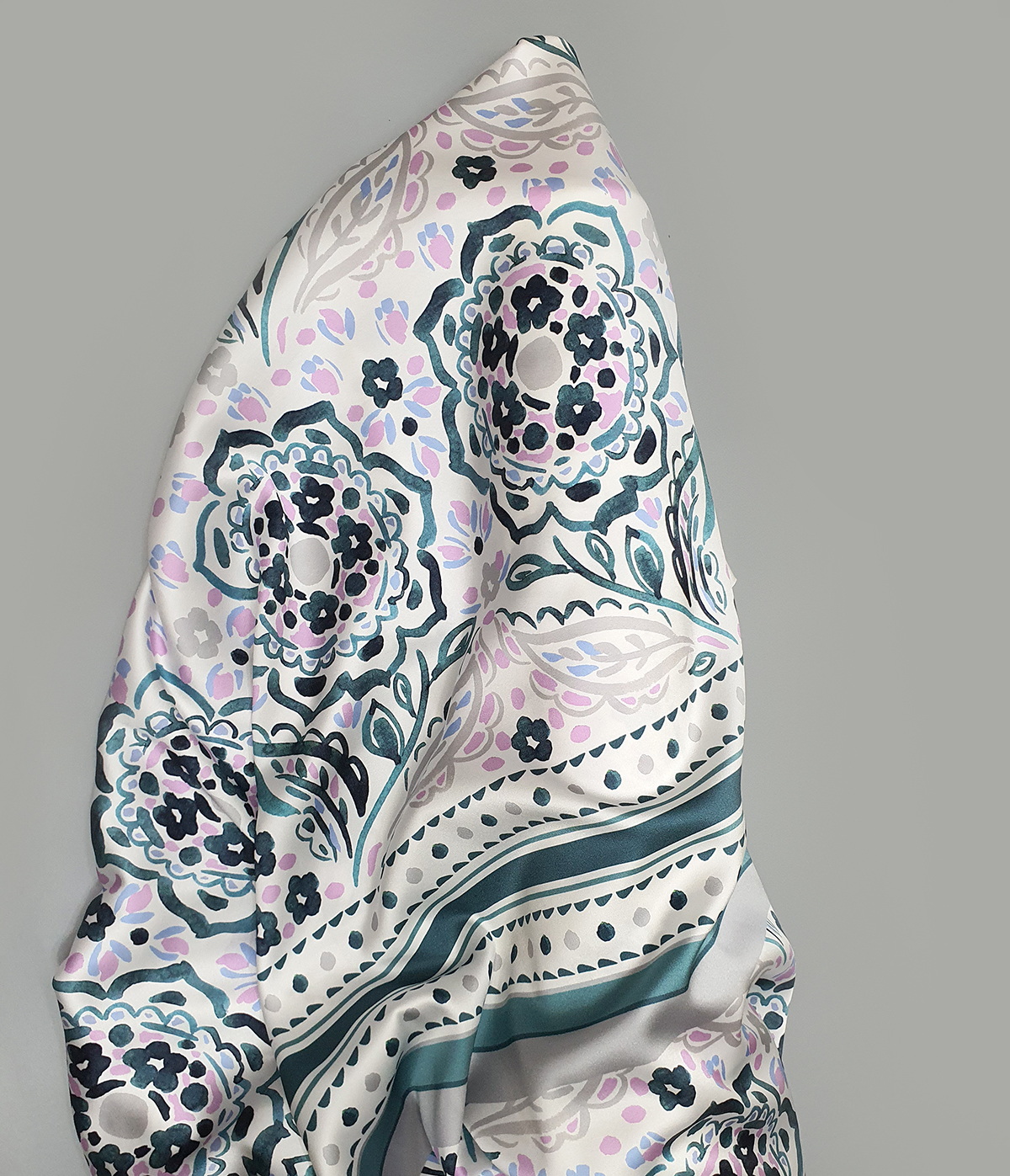 수채화 그린핑크 도비세틴실크 패널디자인(73x140cm)