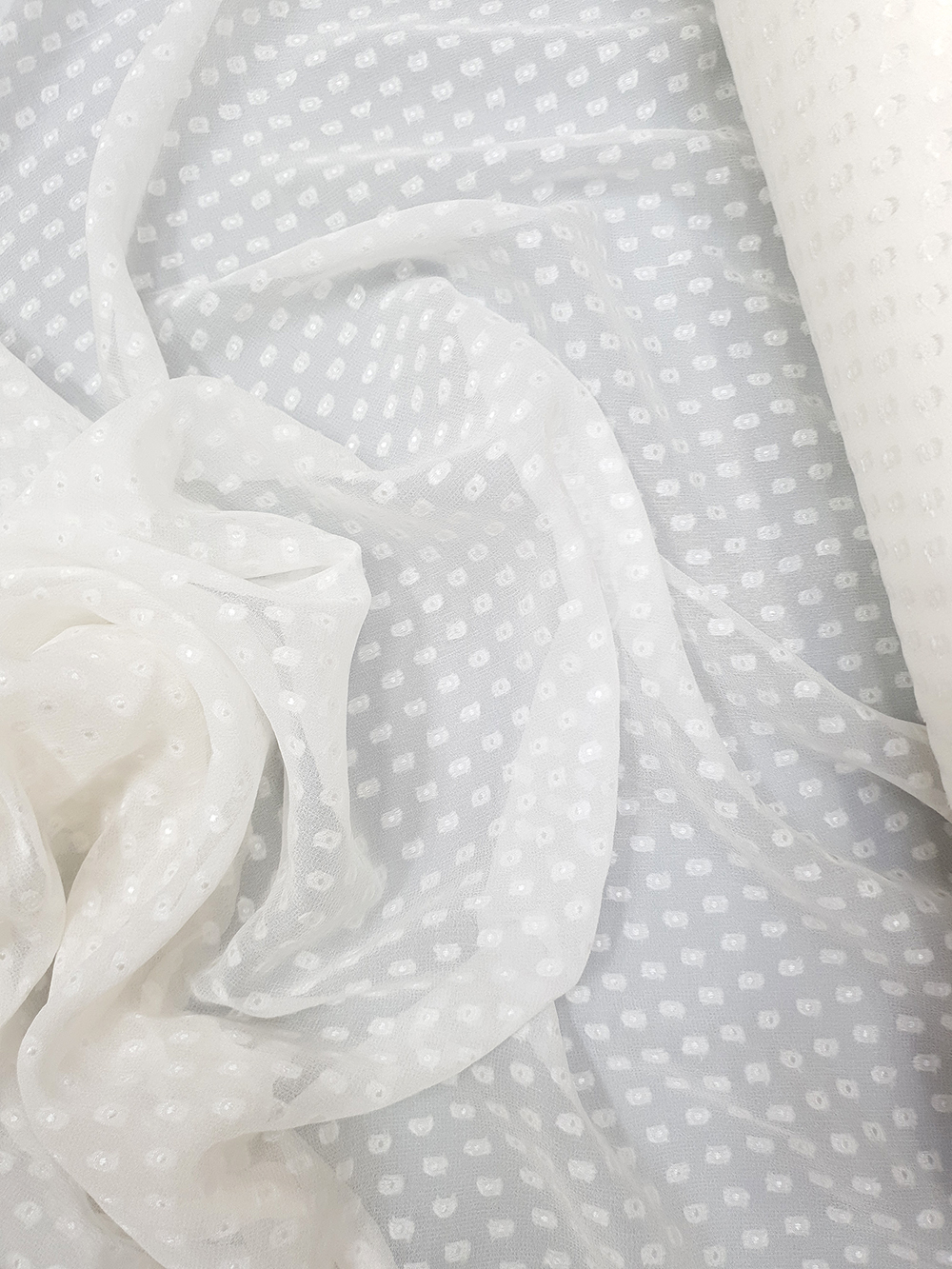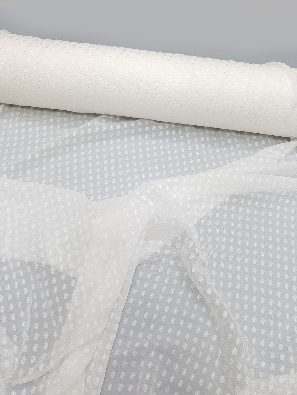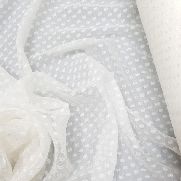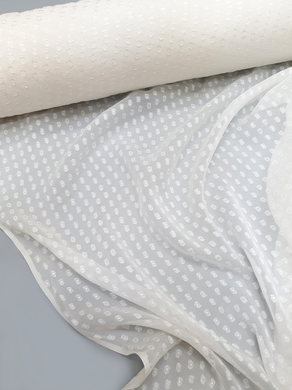 조세트쉬폰 마닥에 작은 도트무늬를 제직한 실크 쉬폰 원단입니다.
