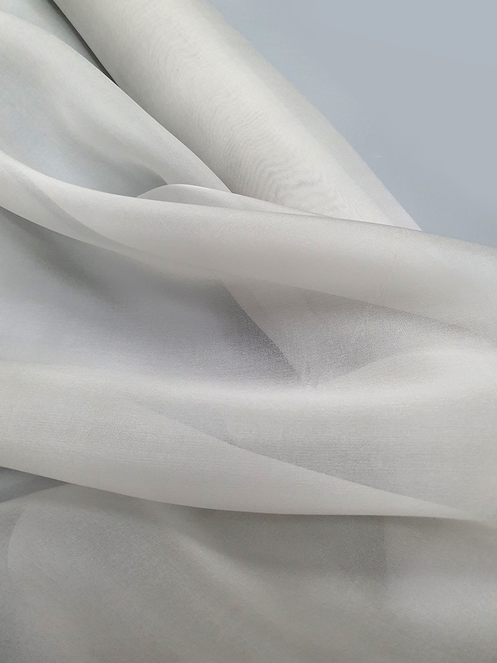 100% 실크 오간디 입니다. 세리신 분해가 되지 않아 뻣뻣한 것이 특징입니다.