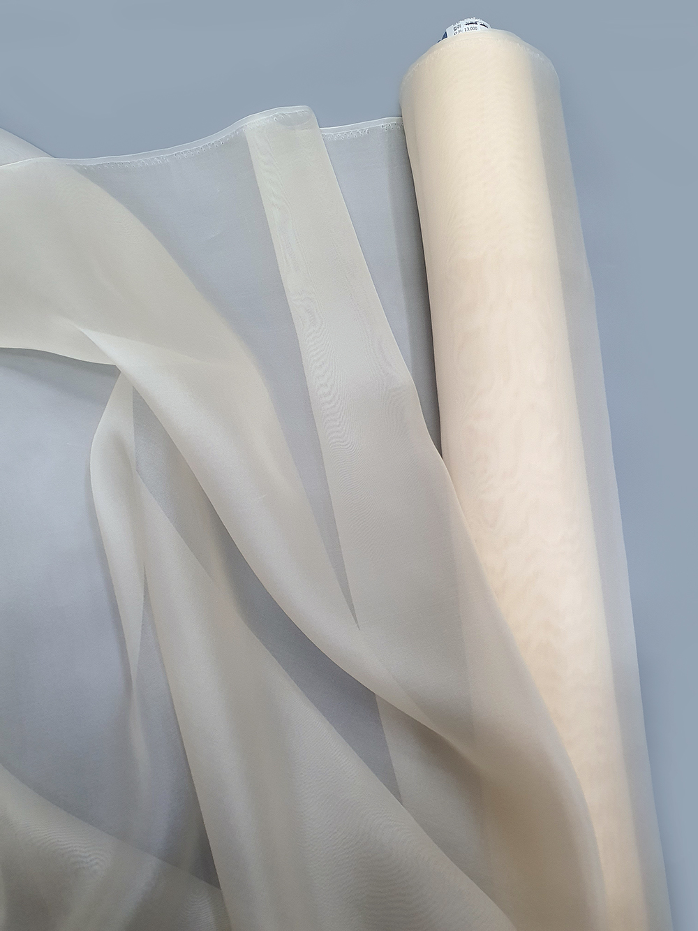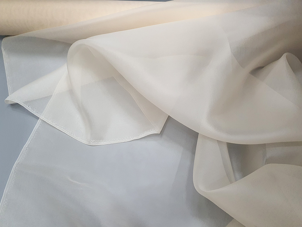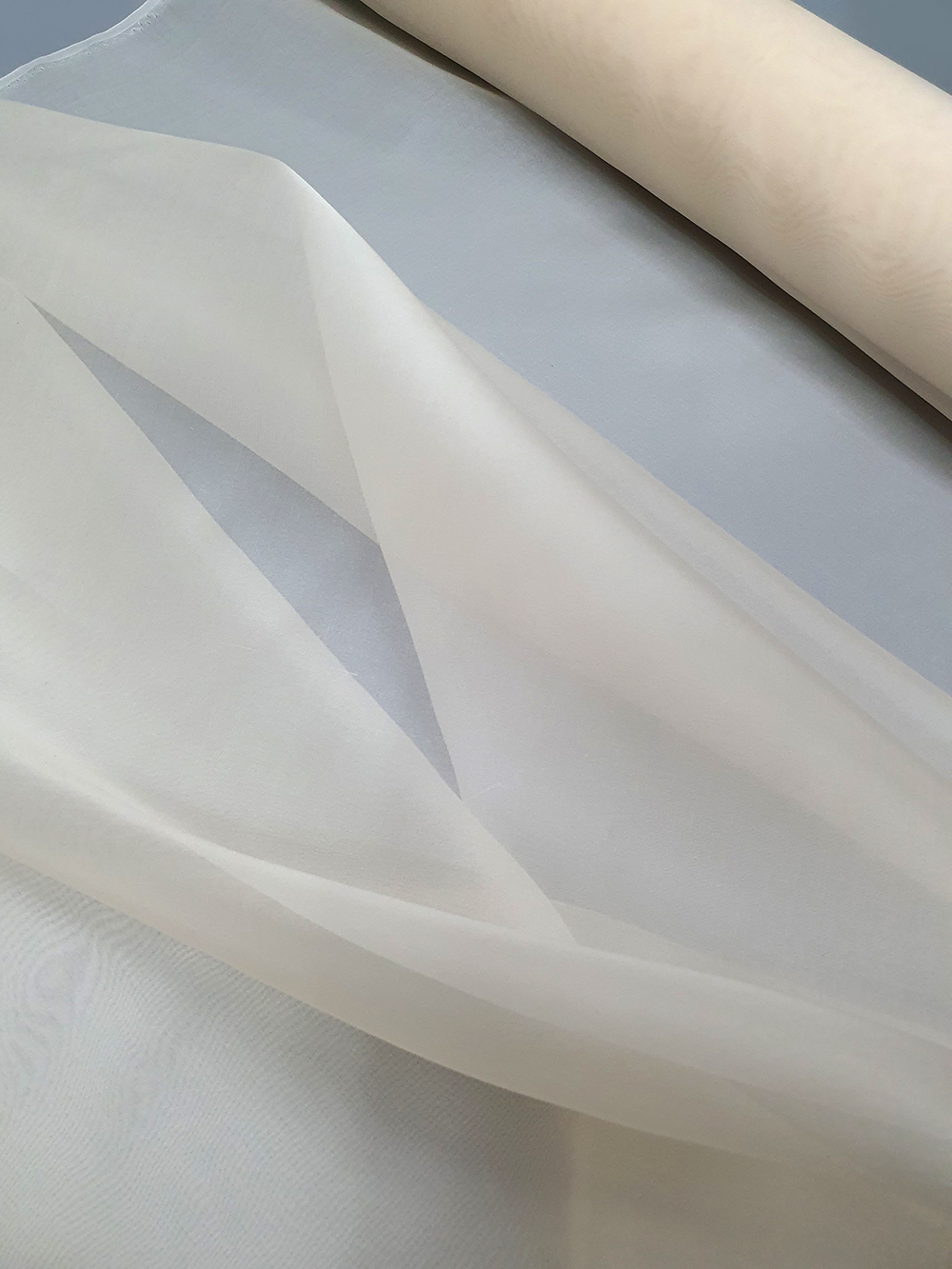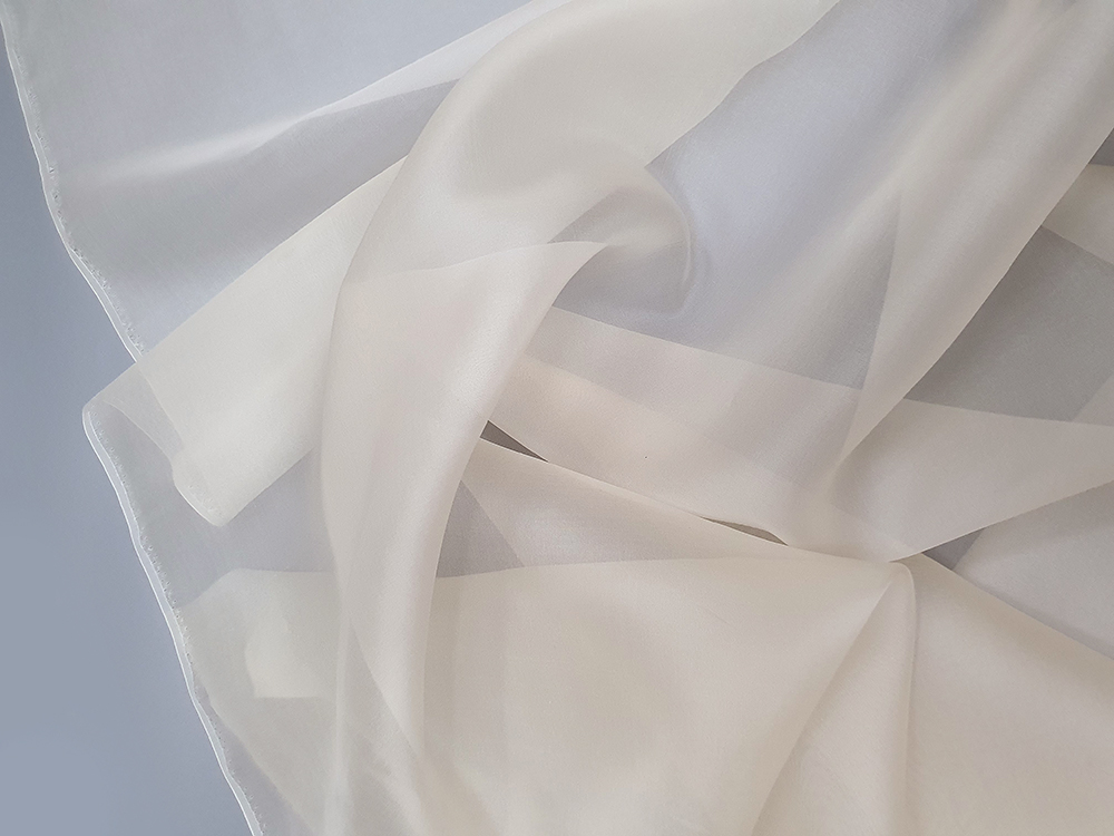 100% 실크 오간디 입니다. 세리신 분해가 되지 않아 뻣뻣한 것이 특징입니다.