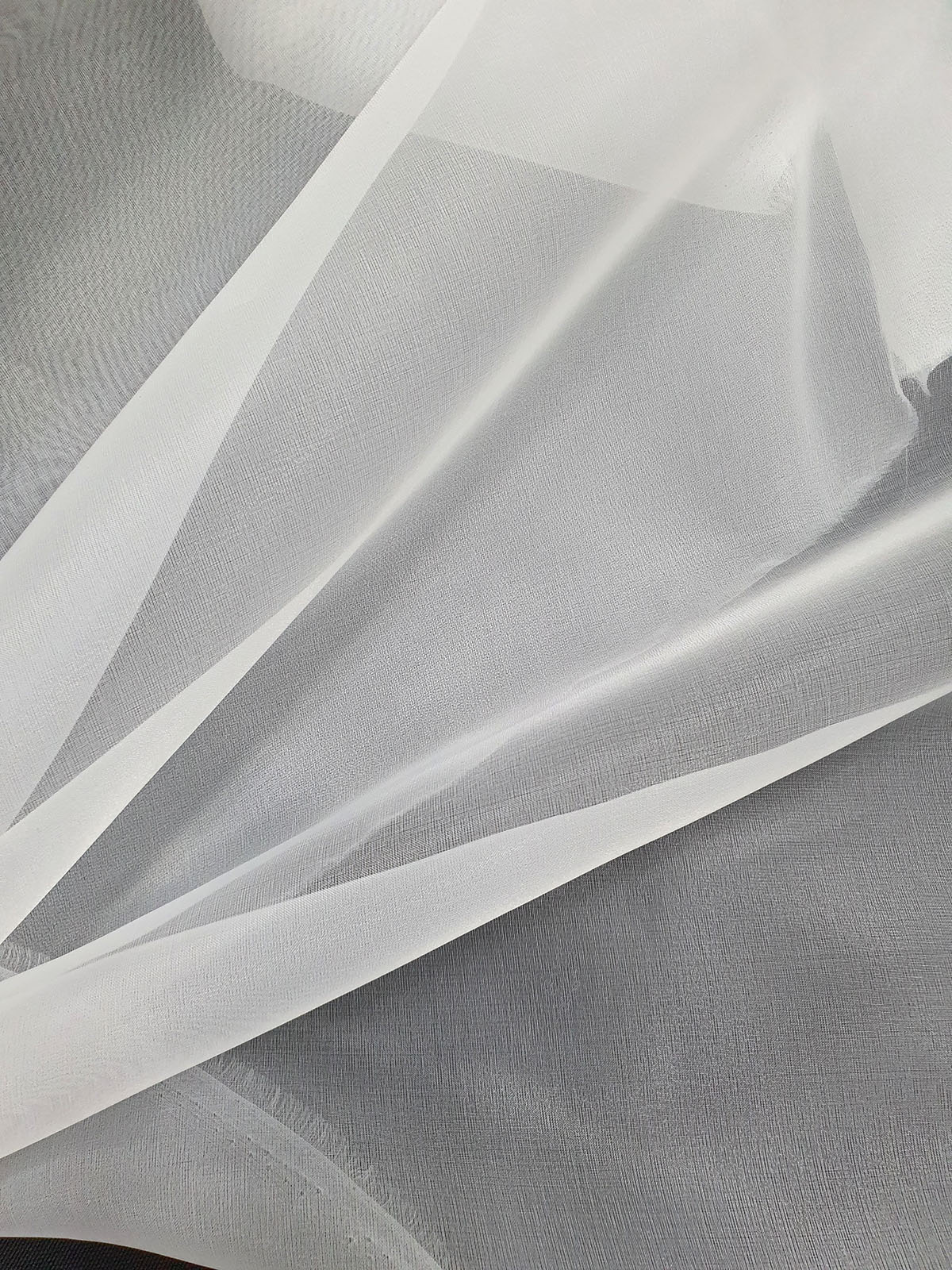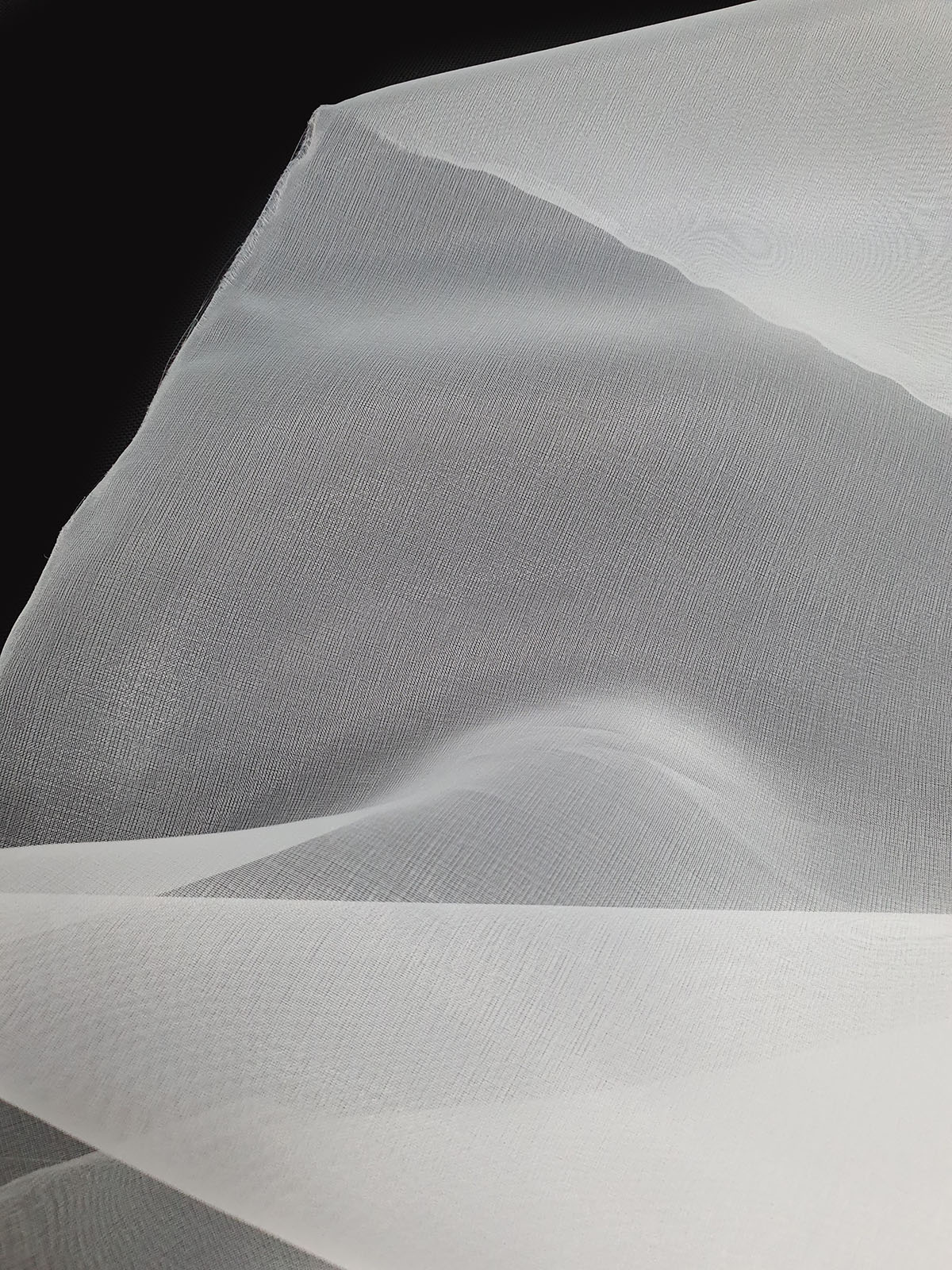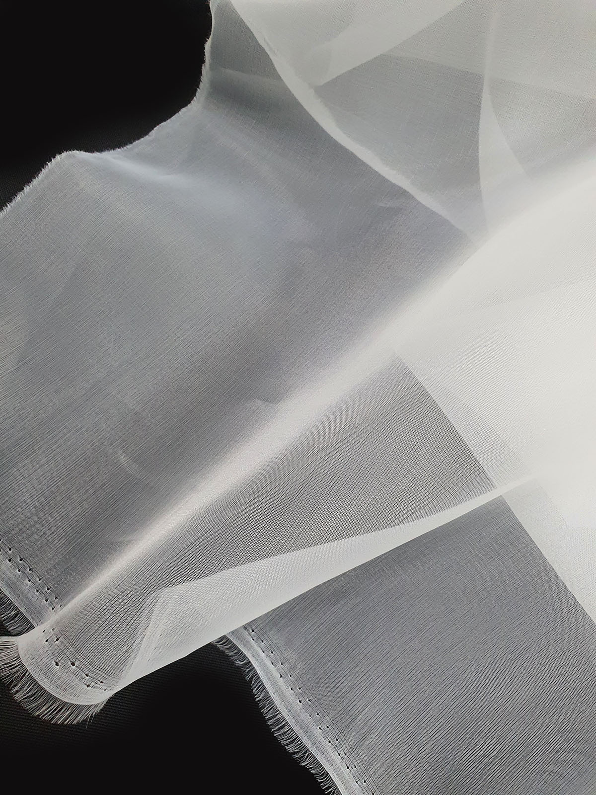실크 오간디조직으로 폴리에스테르 실로 제직한 원단입니다.