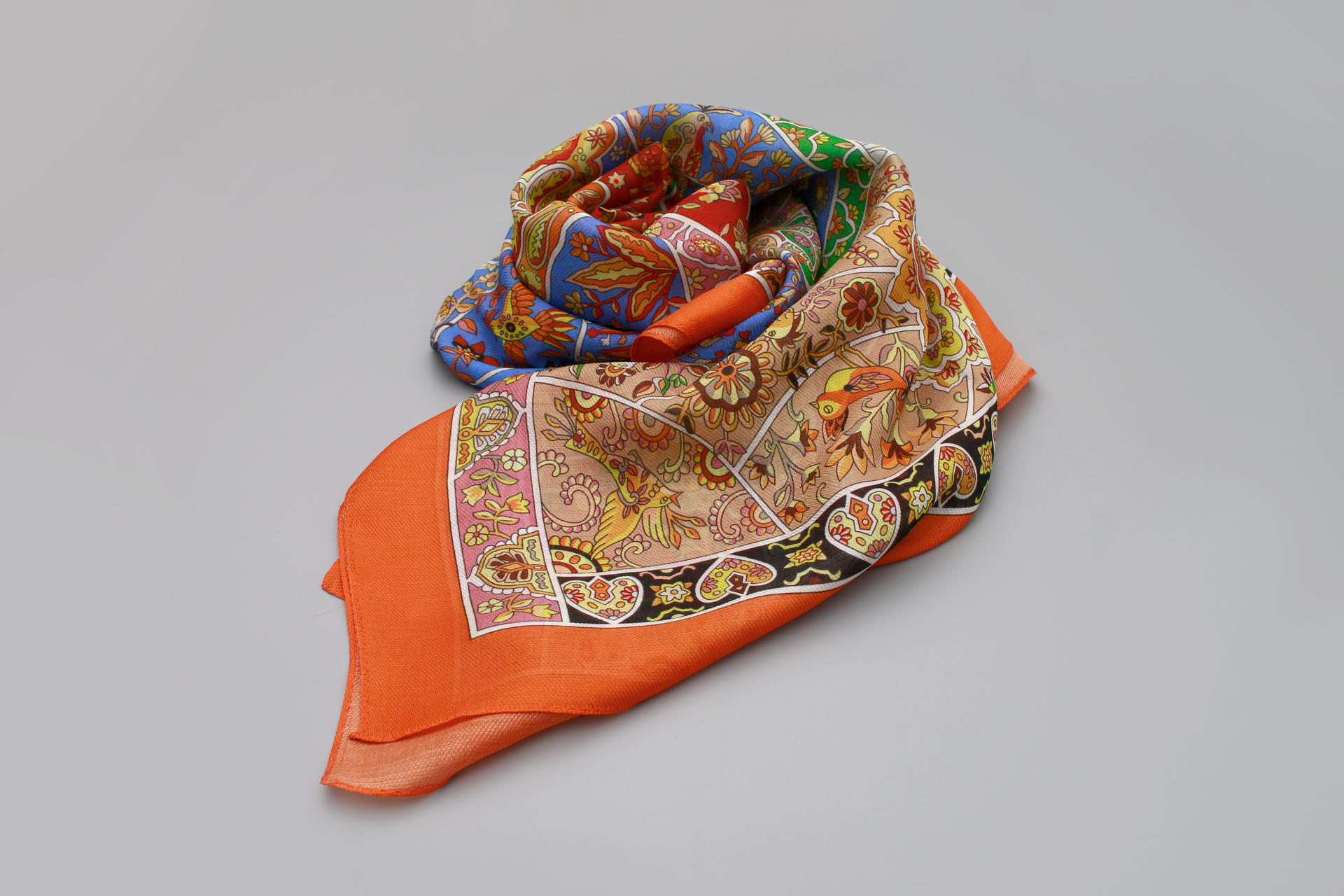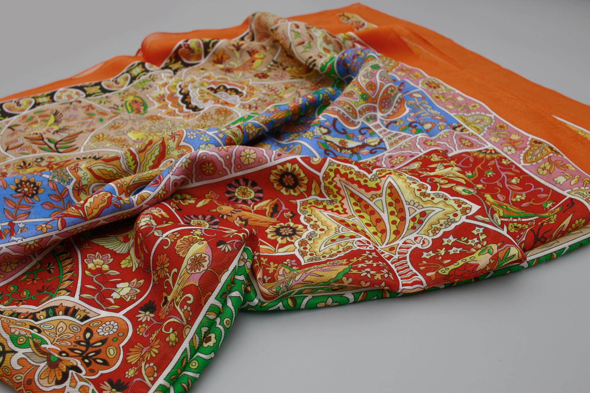 12m/m 울실크에 프린트 되어진 고급 대형 숄 스카프 입니다. 적당한 두께감과 고운 감촉이 특징입니다.