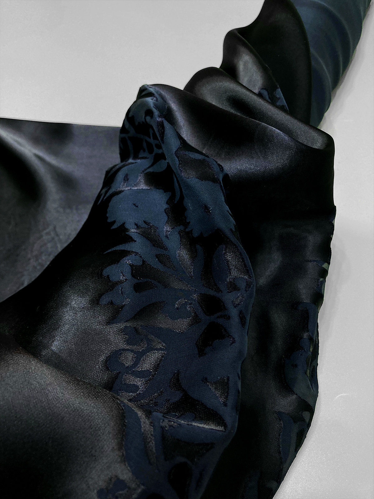 19m/m 실크-레이온 번아웃 원단으로 하단에 페이슬리 무늬가 218cm